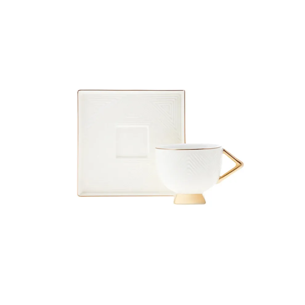 Karaca Art Deco 4 Piece Porcelain Espresso Turkish Coffee Cup Set for 2 People, 90ml, Gold White
