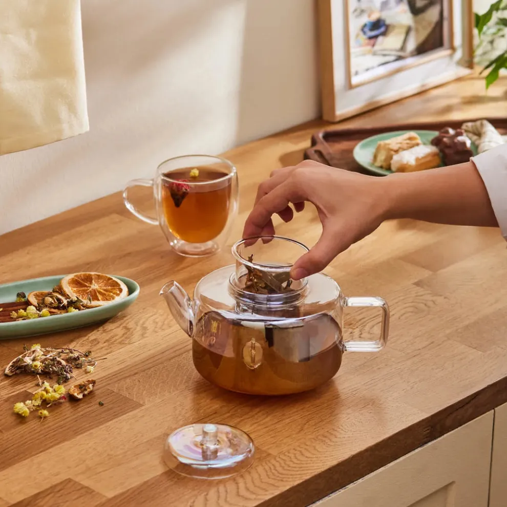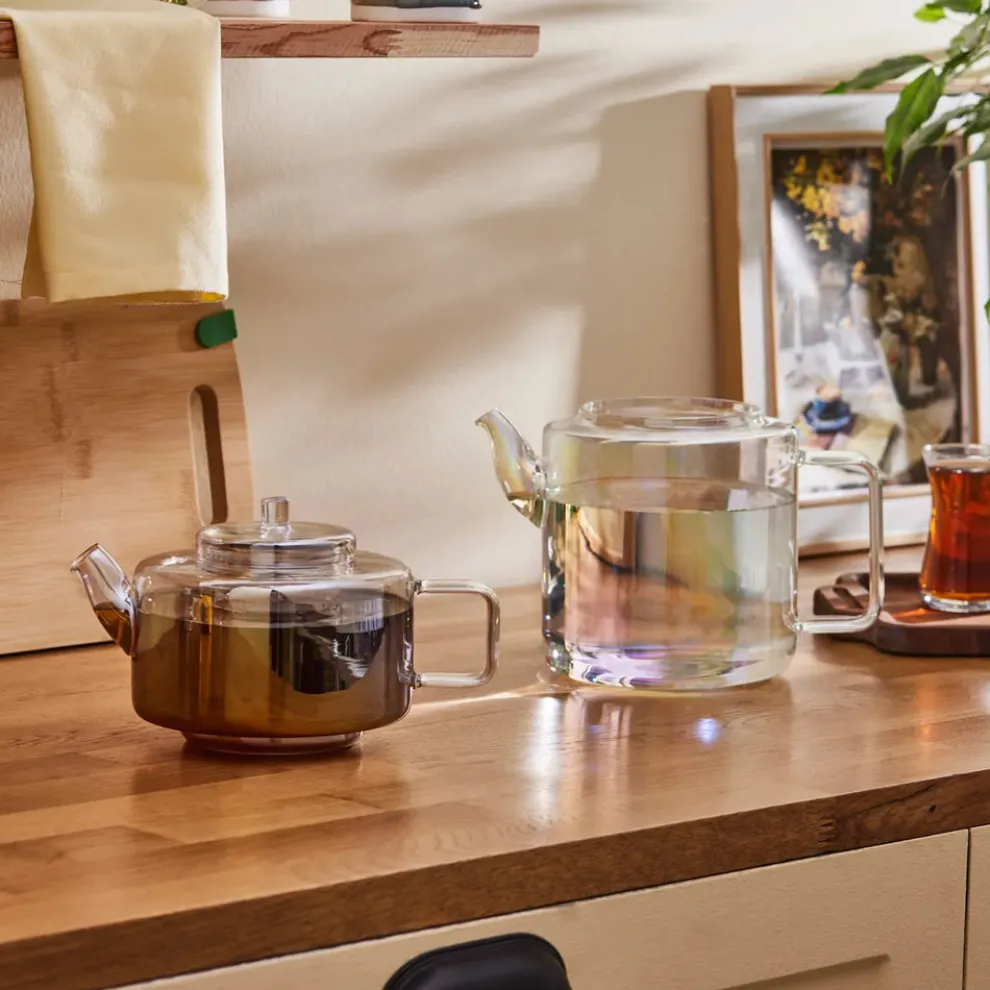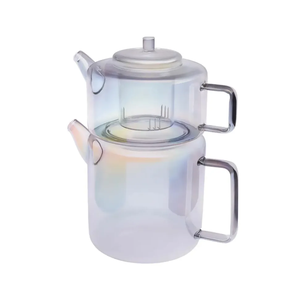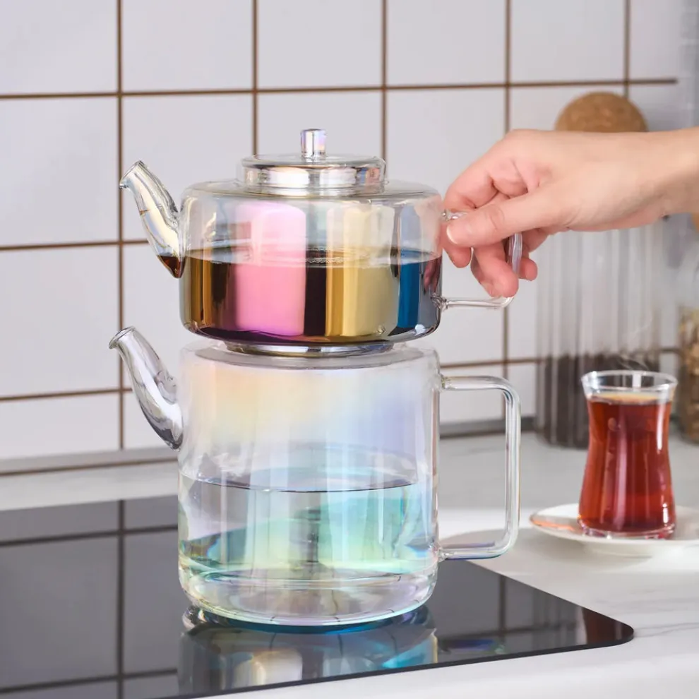 Karaca Flat Borosilicate Glass Luster Teapot, Multi