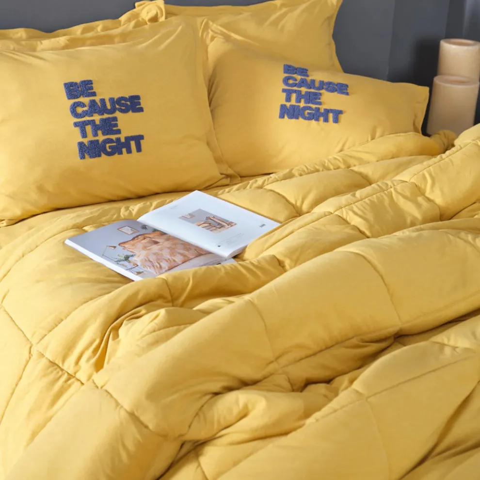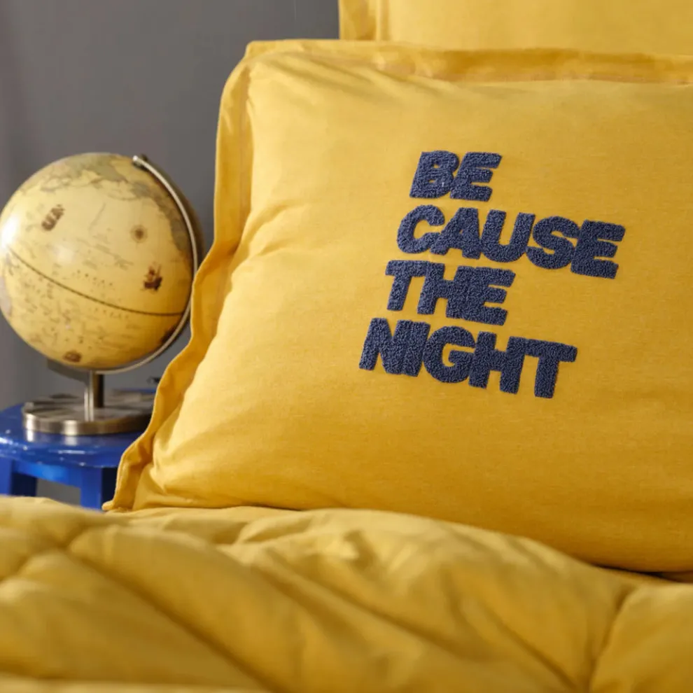 Karaca Home Motto Cotton Comfort Duvet Set with Bed Sheet, Double, Mustard
