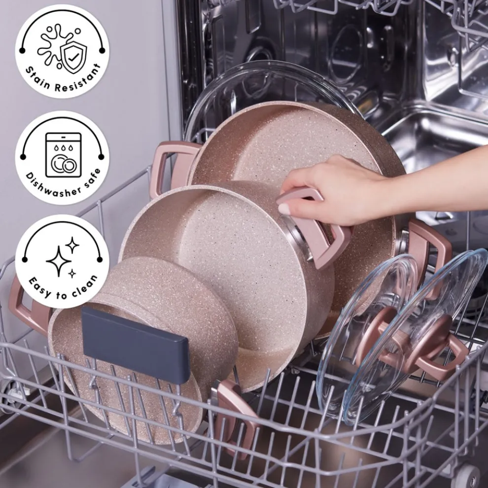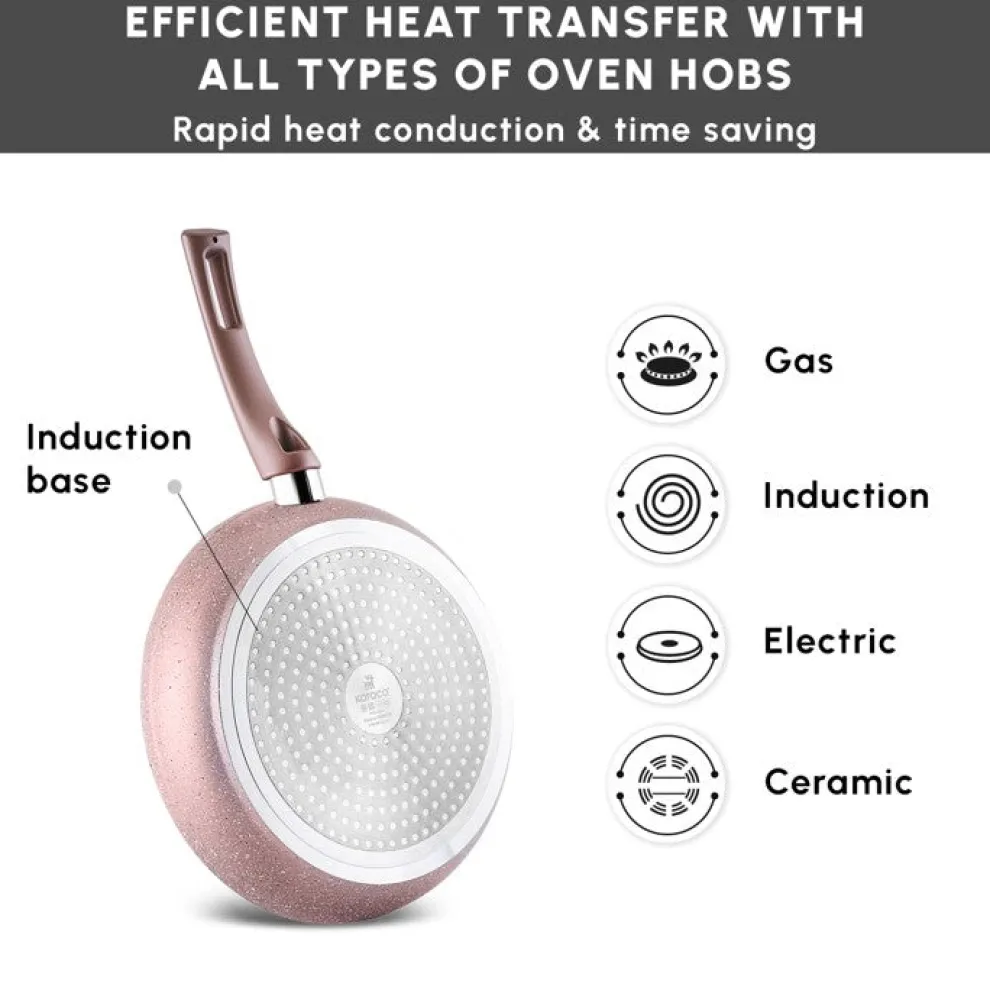 Featuring a durable non-stick coating, this cookware set provides an easy cooking and cleaning experience. The non-stick surface ensures that food does not stick, making it ideal for healthy cooking with less oil.