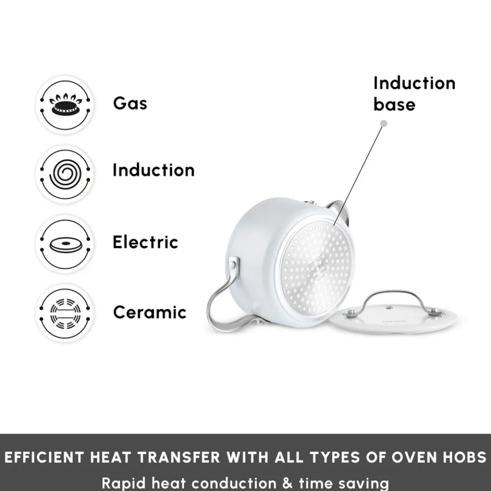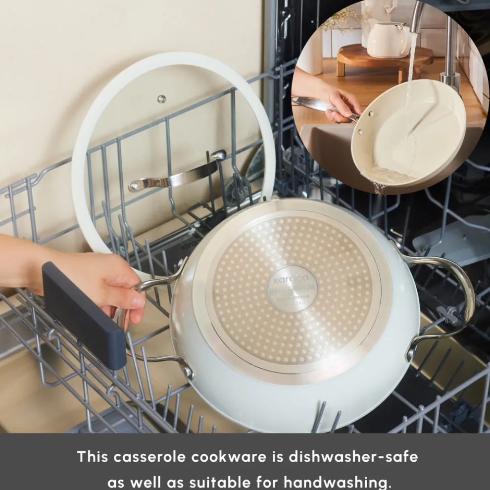 A brand-new pan set with superior non-stick qualities: SwissCrystal. Drawing its strength from the advanced non-stick SwissCrystal surface, the Karaca SwissCrystal Pan Set allows you to cook a wide variety of dishes – from eggs and fish to chicken – without the need for oil. The surface, infused with Swiss crystals, is free from potentially harmful chemical compounds such as PFAS, ensuring a healthier cooking experience. It’s also remarkably easy to clean – a brief soak in water is often all it takes. Designed with both practicality and performance in mind, this durable set is suitable for use in the oven, allowing you to effortlessly transition from hob to oven when preparing a variety of meals, and giving you even more versatility in your everyday cooking.