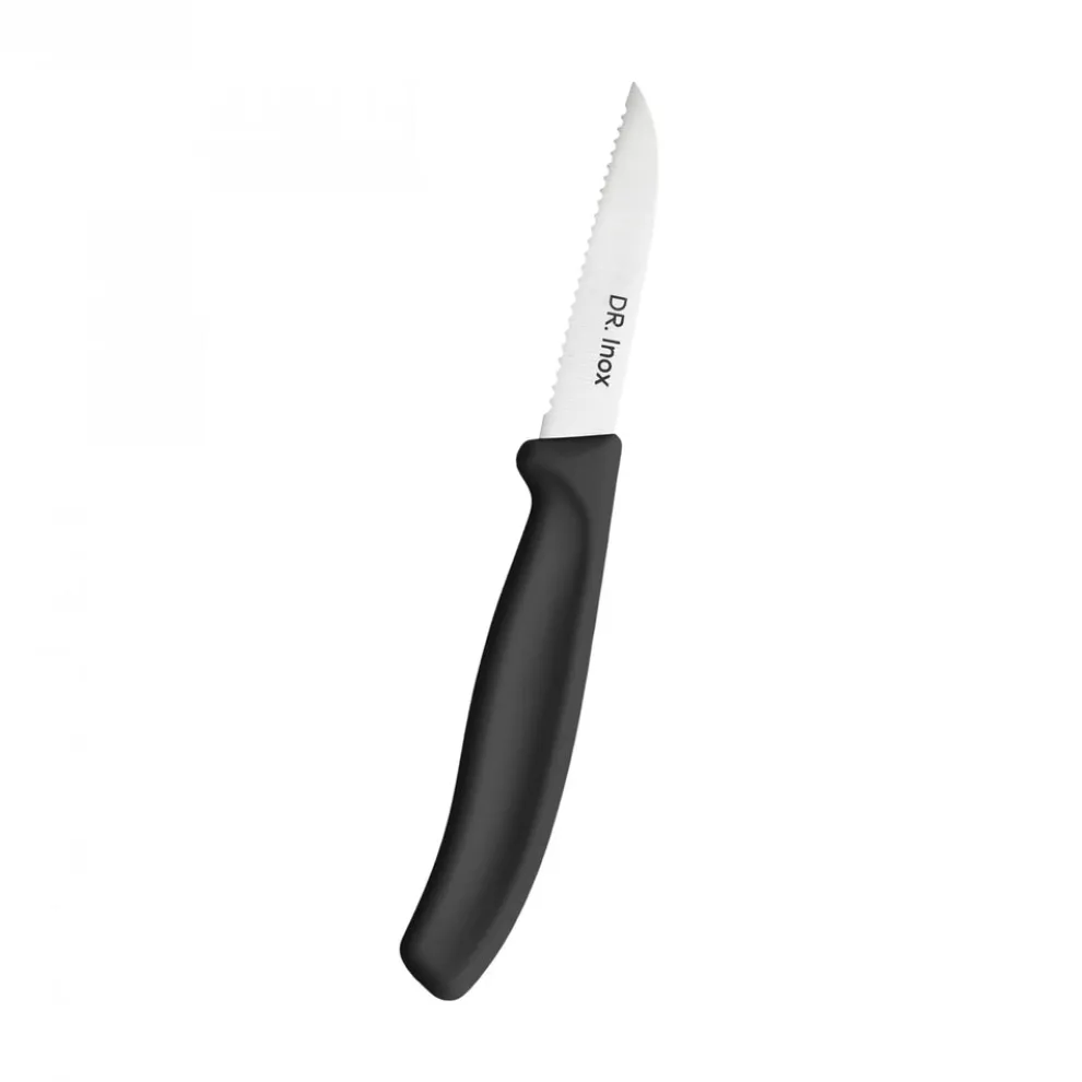 Dr.Inox Stainless Steel Serrated Paring Knife, 19cm, Black