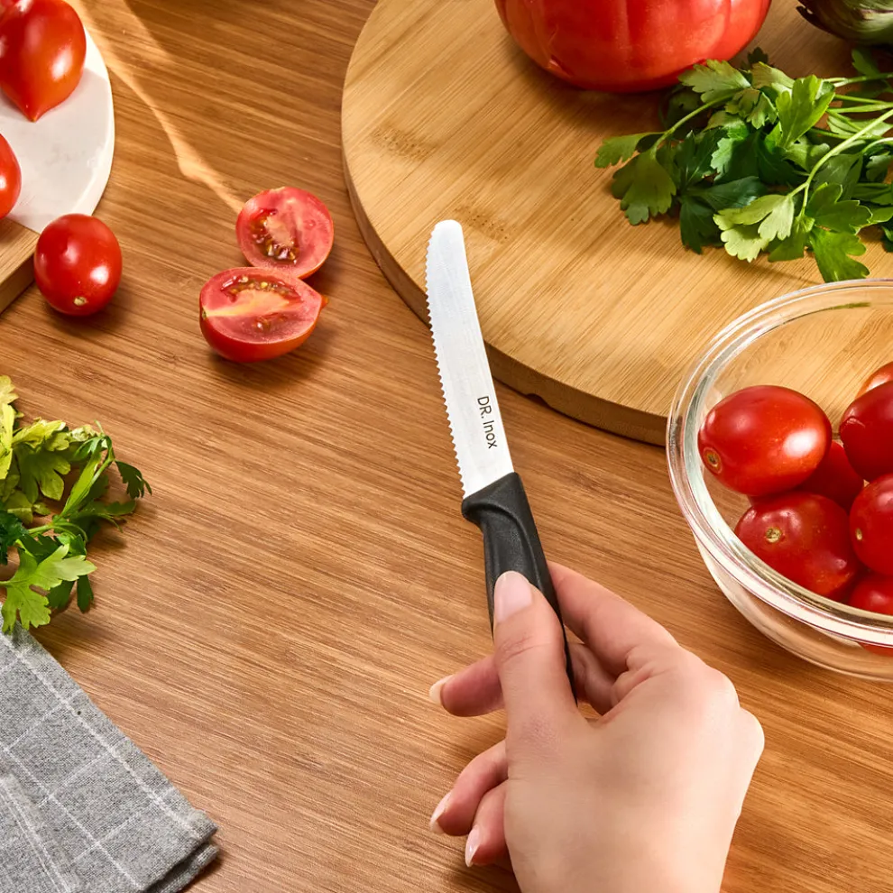 Dr.Inox Stainless Steel Tomato Knife, 22cm, Black
