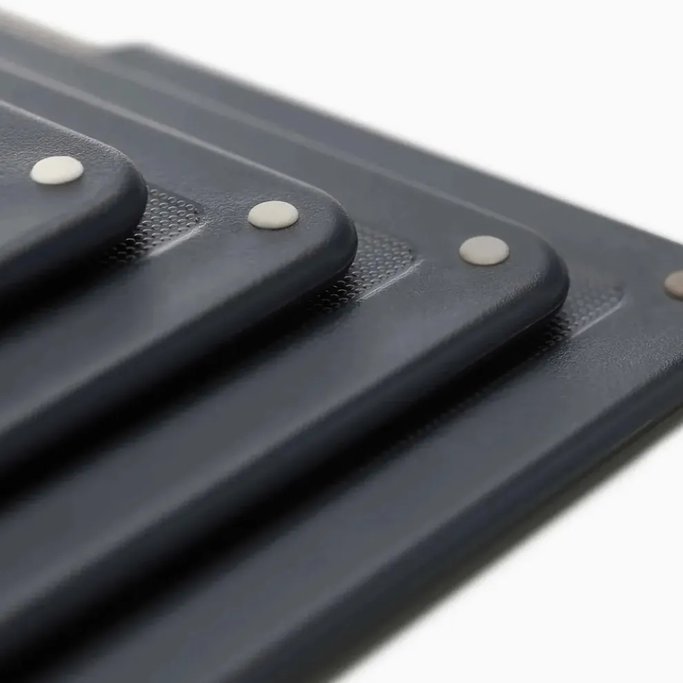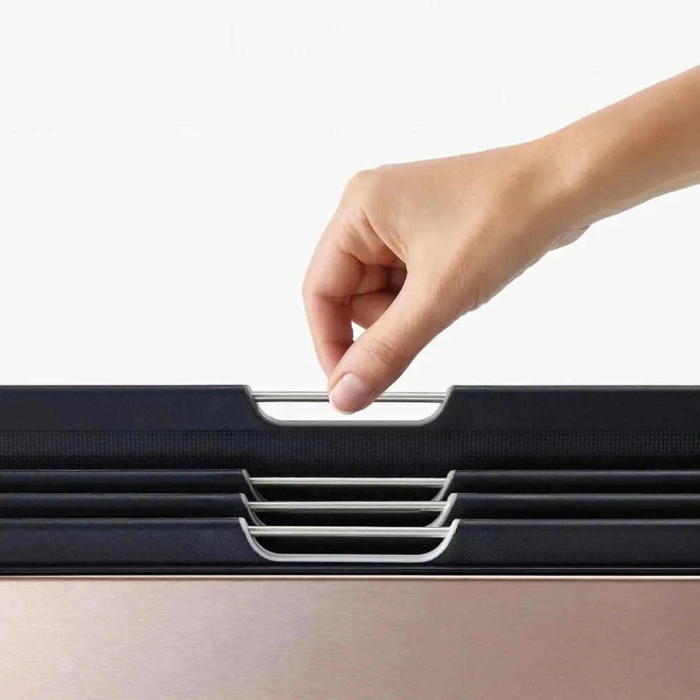 Our Folio™ Steel chopping board set is perfect for keeping all your boards organised and easy to access. Each chopping board features knife-friendly textured surfaces and colour-coded details to help make food prep more hygienic and efficient. The finishing touch? A stainless-steel case that keeps the boards neat and tidy on the worktop.