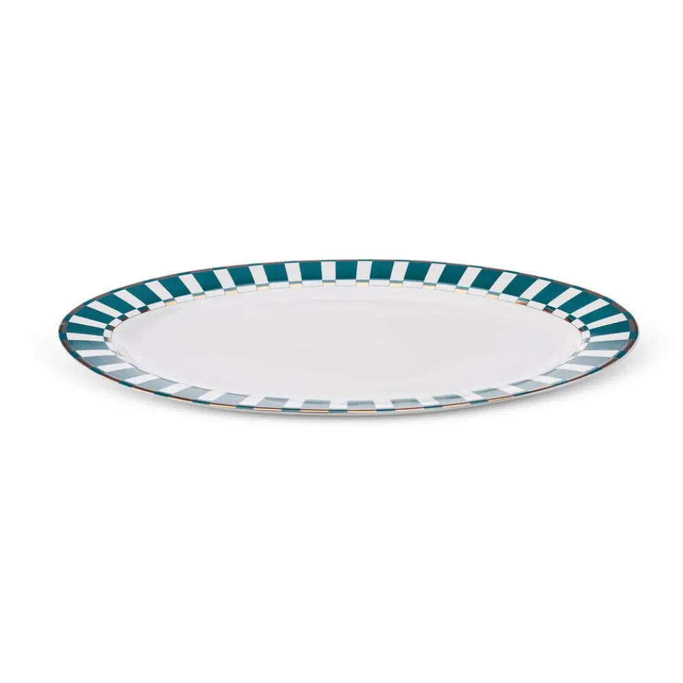 Karaca Aries Porcelain Serving Platter, 36cm, Green Multi
