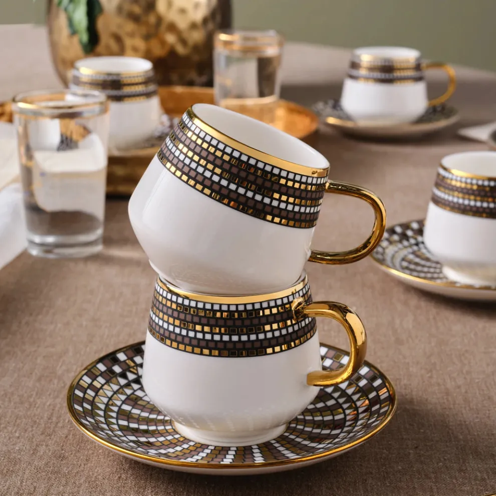 Karaca Belgin 12-Piece Porcelain Espresso Turkish Coffee Cup for 6 People, 90ml, Blue
