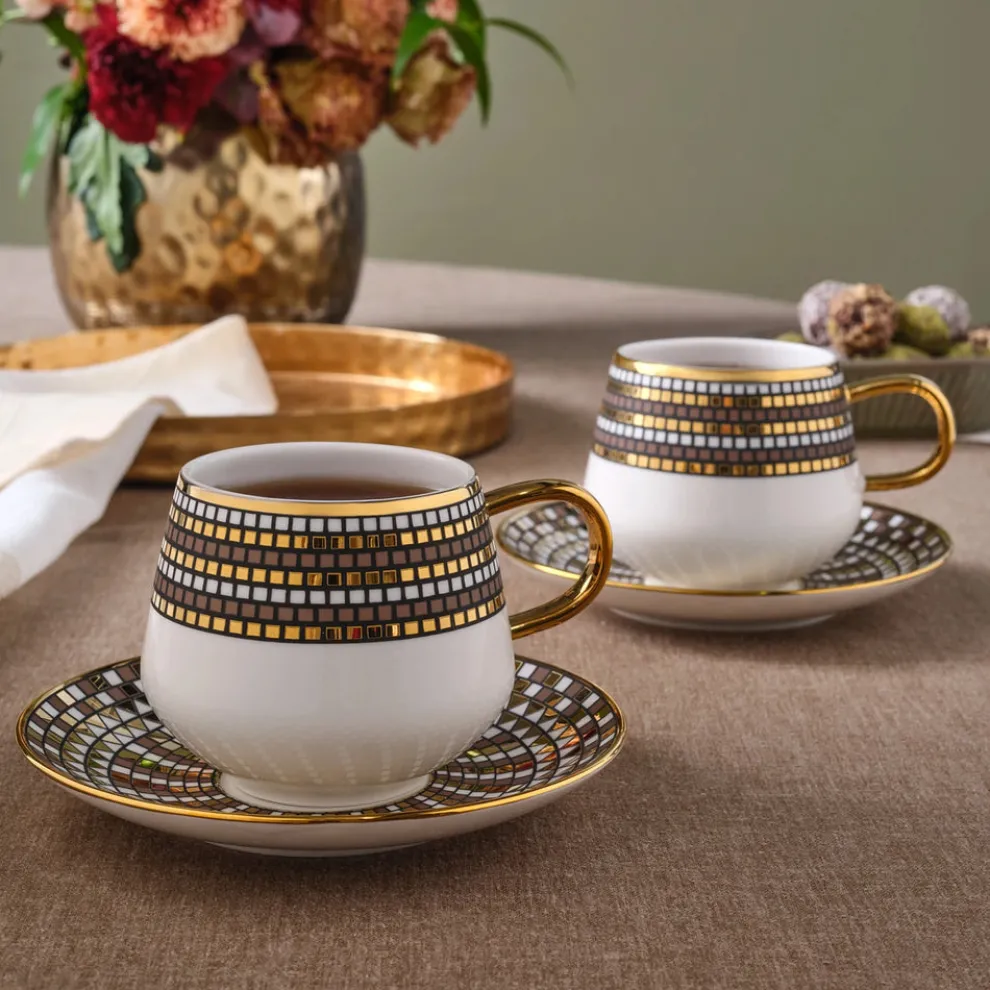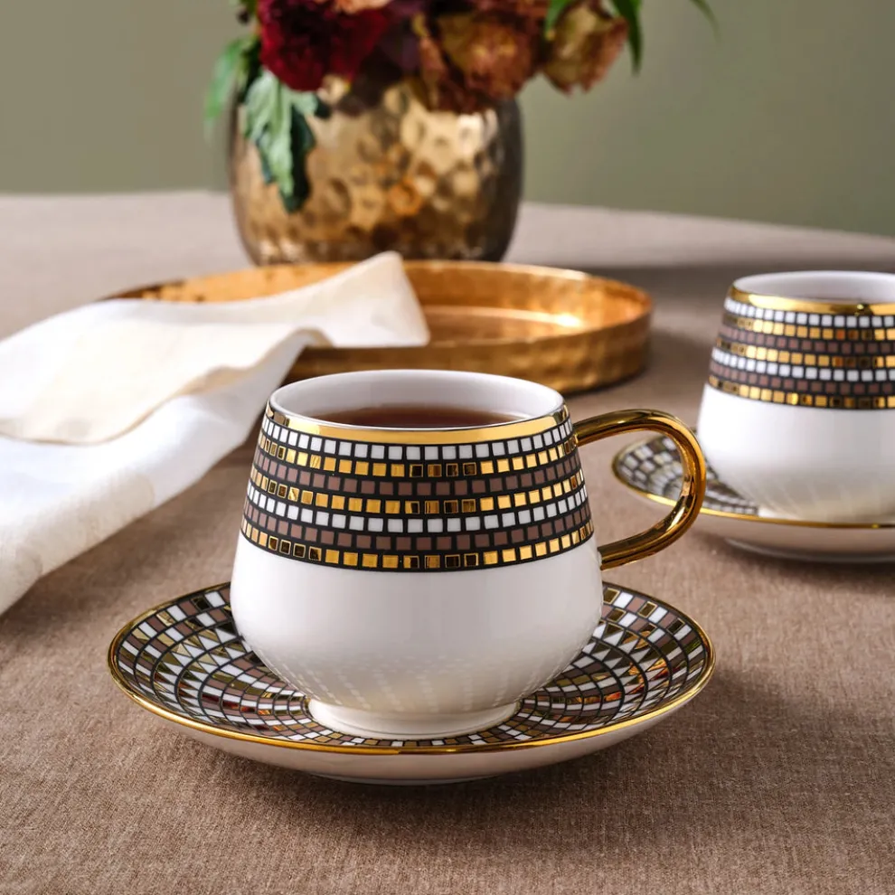 Karaca Belgin 4-Piece Glass Tea Cup and Saucer, 220ml, Multi