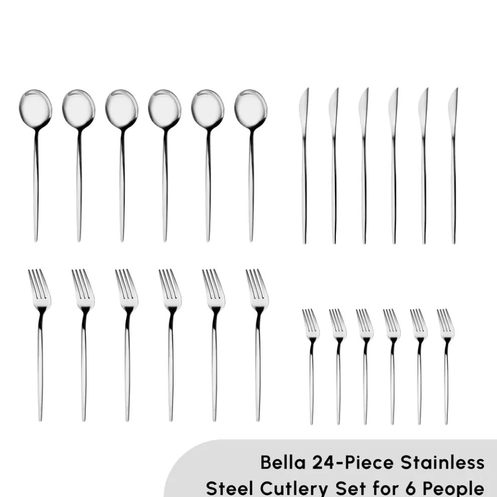 Karaca Bella Stainless Steel 24-Piece Cutlery Set for 6 People, Silver