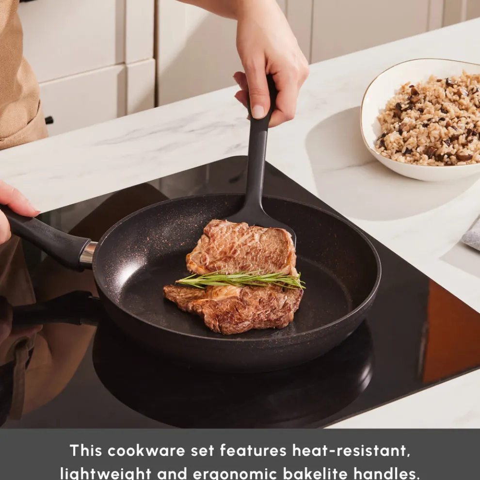 The high-quality material ensures even heat distribution for perfectly cooked meals every time. This feature prevents hot spots and ensures that your food is cooked uniformly. Enjoy consistent cooking results with this reliable cookware set.