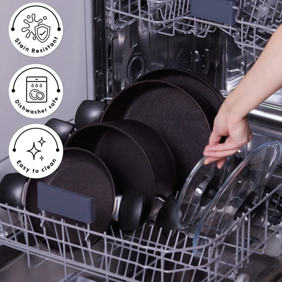 The BioGranite coating ensures a non-stick, scratch-resistant surface, providing a healthier cooking option with less oil. This advanced coating technology also makes the cookware highly durable, extending its lifespan. Enjoy effortless cooking and cleaning with this innovative non-stick surface.