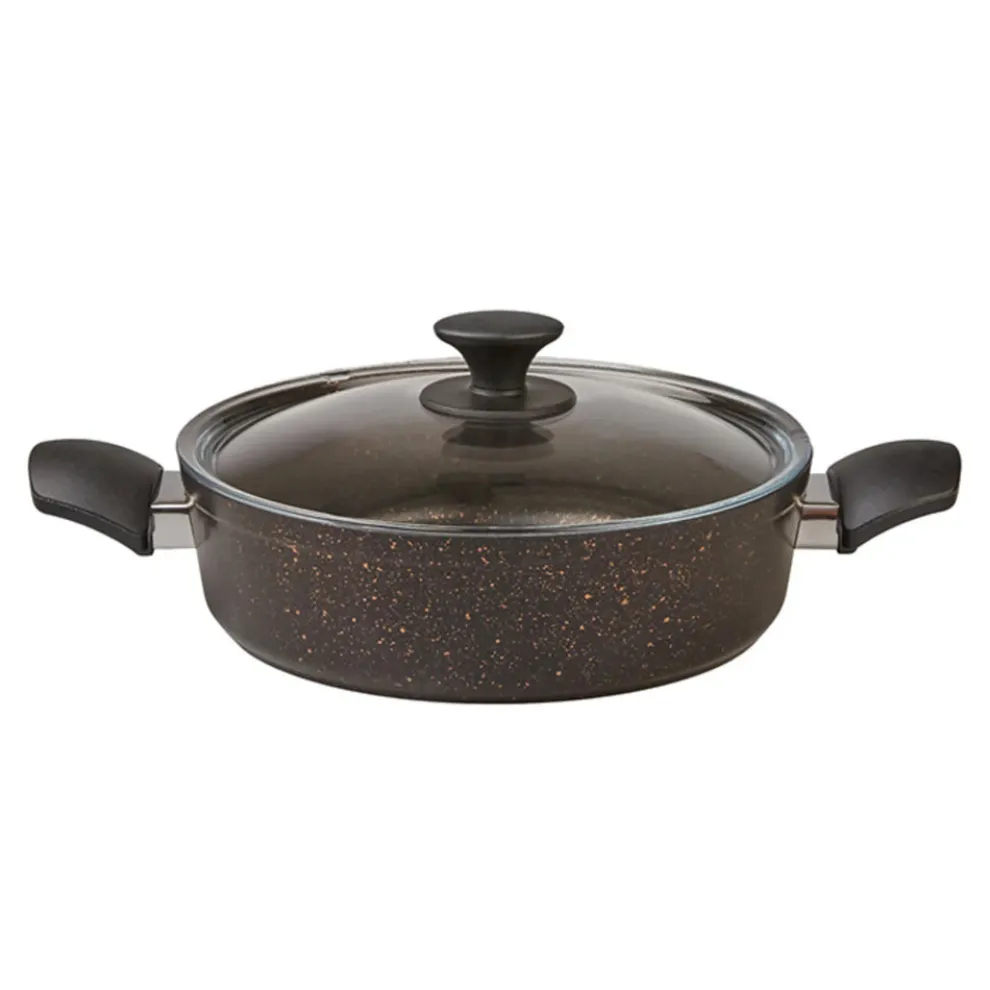 Experience the ultimate cooking convenience with the Biogranite Cookware Set. Its special heat-resistant glass cover allows you to effortlessly monitor the cooking process, ensuring perfect results every time. Elevate your culinary adventures with this high-quality cookware set that combines durability, functionality, and style.