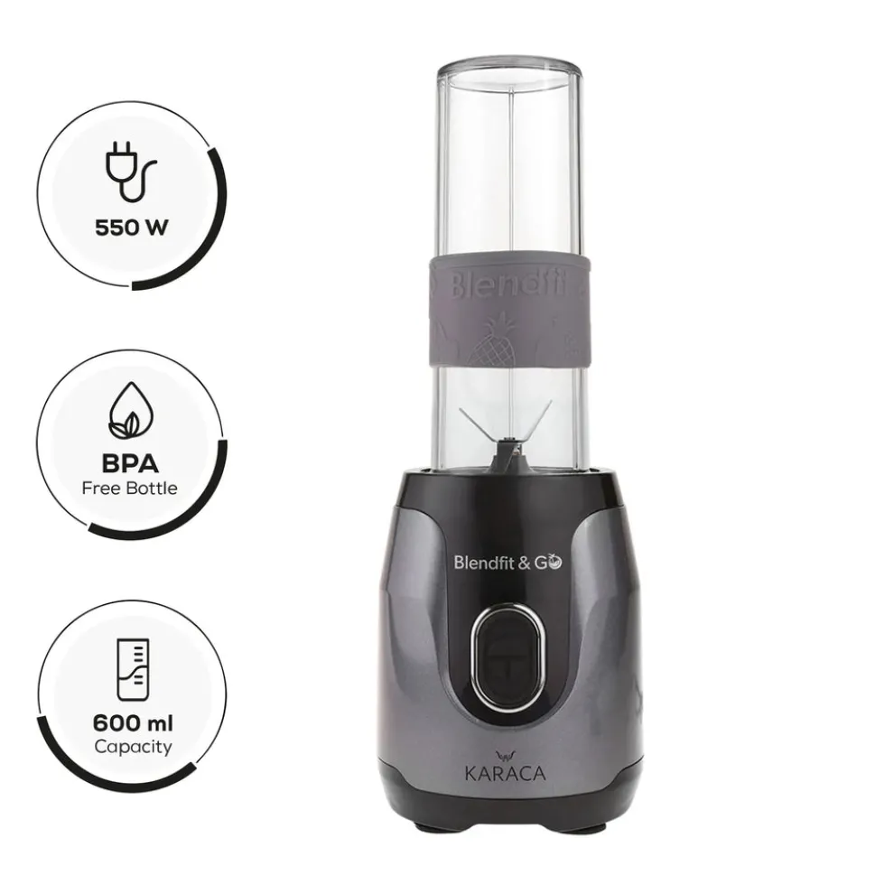 Karaca Blendfit Go Personal Smoothie Blender, 2x 600ml Bottle, 550W, Anthracite