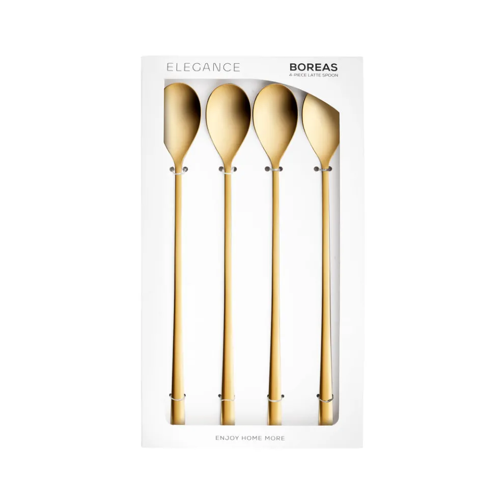 Karaca Boreas 4-Piece Stainless Steel Latte Spoon, Gold
