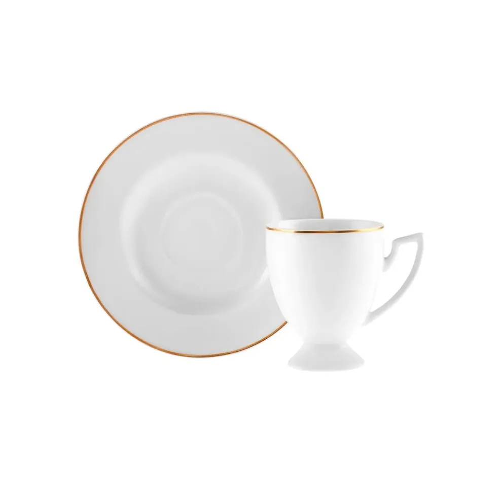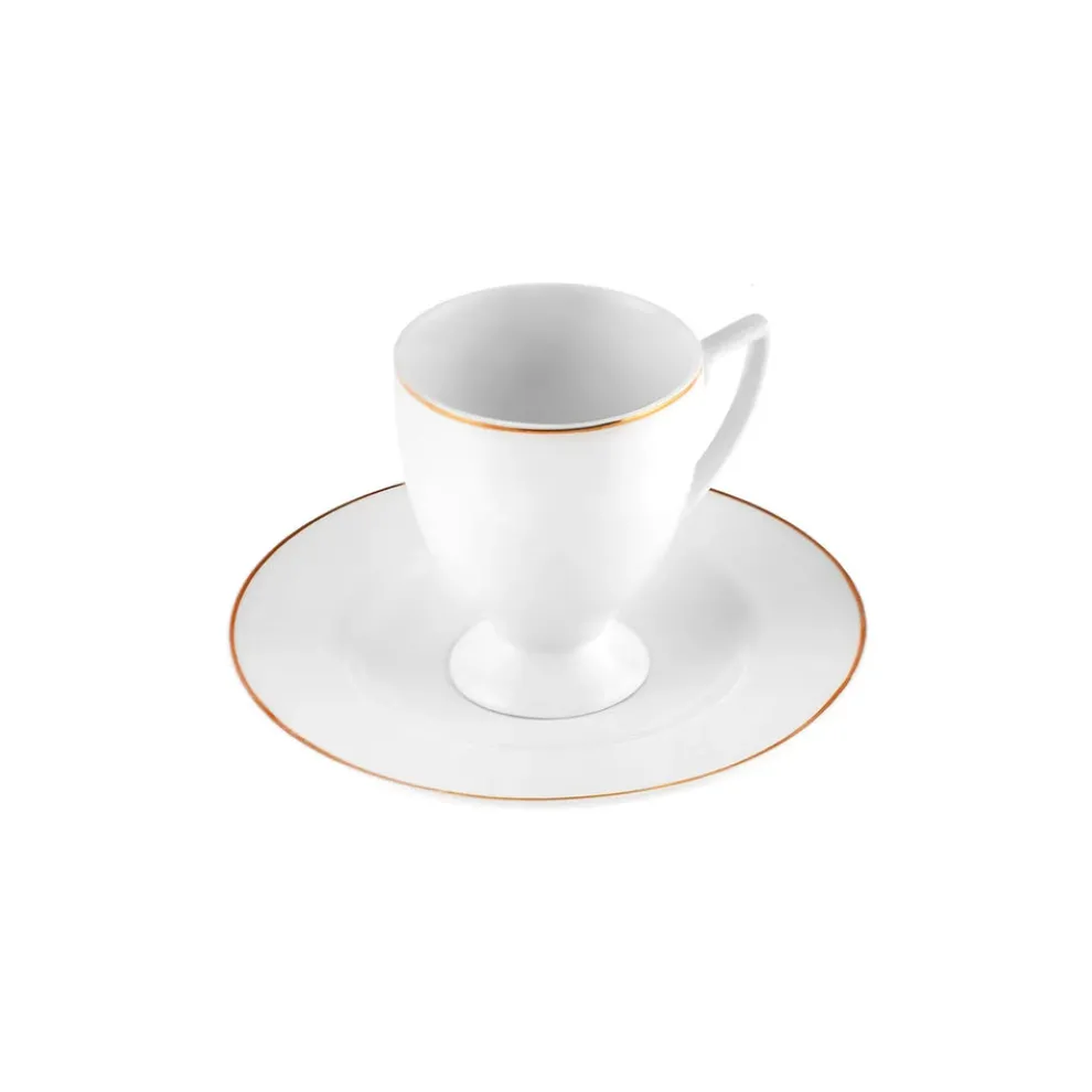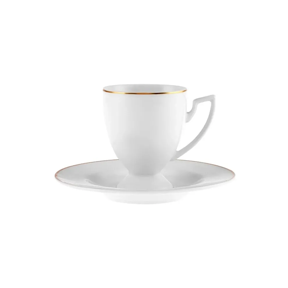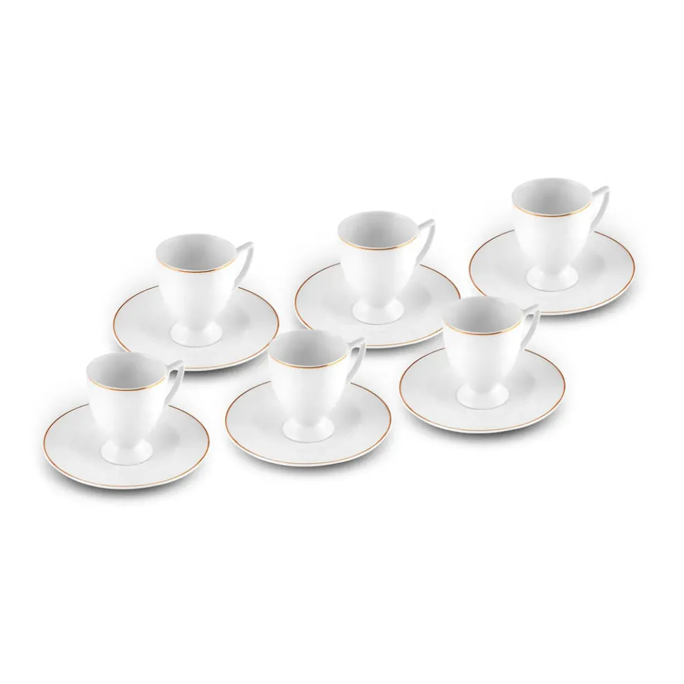 Karaca Boyoz 12-Piece Porcelain Espresso Turkish Coffee Cup Set for 6 People, 85ml, White Gold