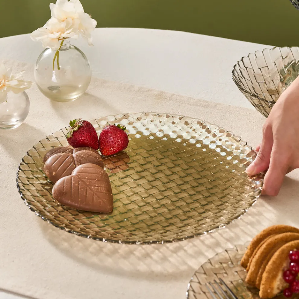 The Karaca Braid Lustre Glass Dinner Plate, 28cm in Luster, brings a touch of luxury to your table. Crafted from high-quality glass, its 28cm size is perfect for serving main courses with elegance. The lustrous finish and intricate braid design add sophistication to any setting, while its microwave-safe and dishwasher-safe features offer convenience for modern living. With a 2-year guarantee, this durable plate combines both style and practicality, making it an ideal choice for everyday use or special occasions. Elevate your dining experience with the timeless beauty of the Karaca Braid Lustre Glass Dinner Plate.