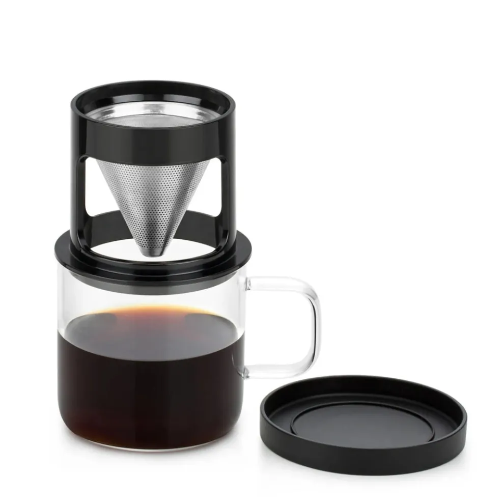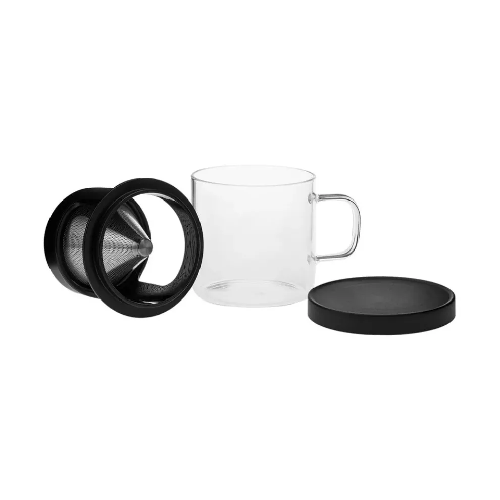 Karaca Brewy Glass Coffee Dripper Mug, 300ml, Black Transparent