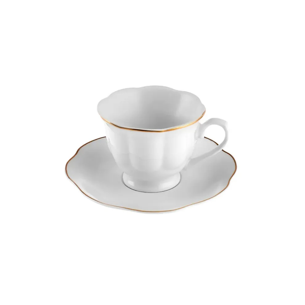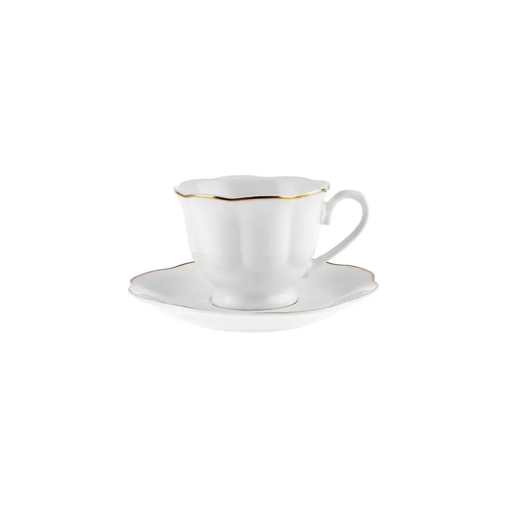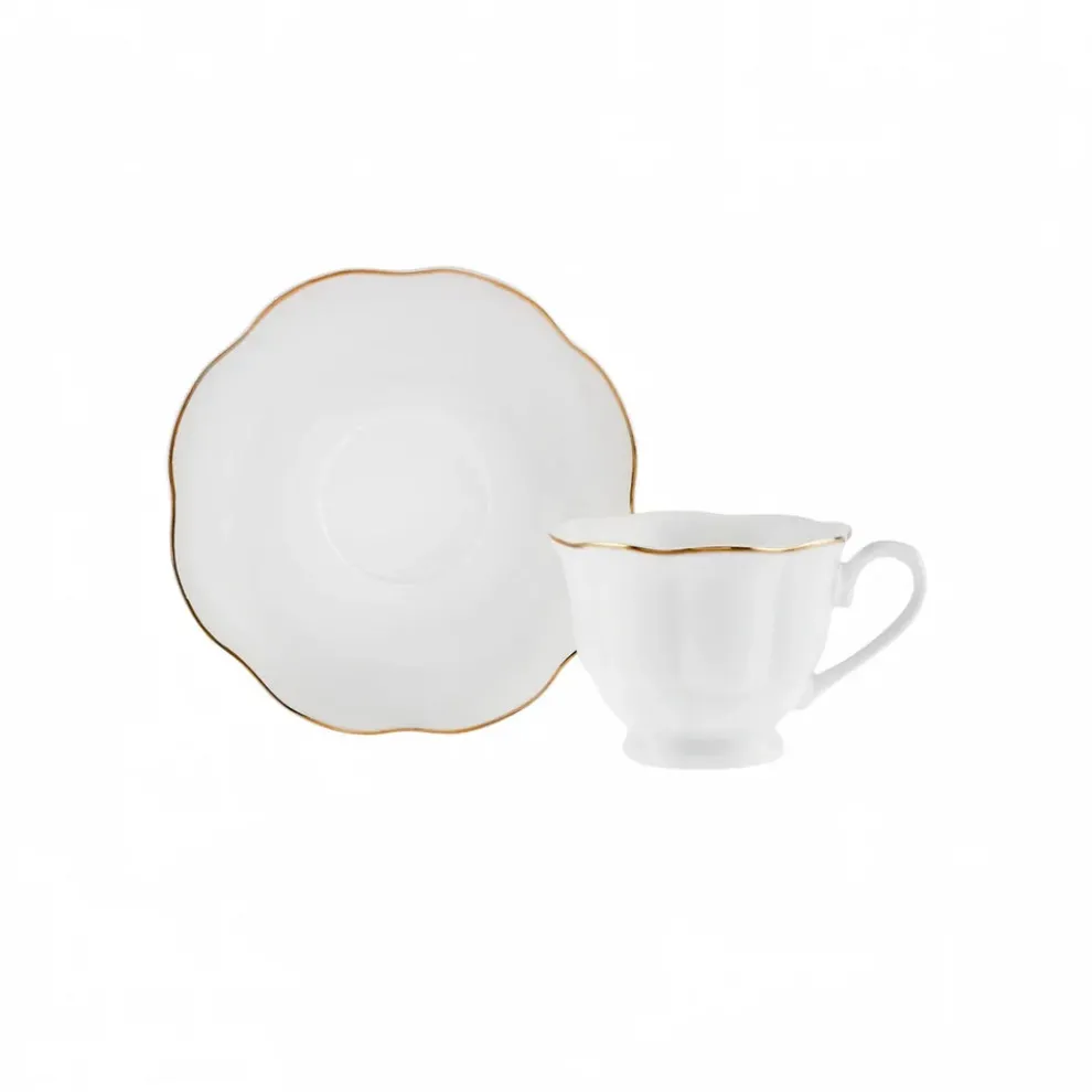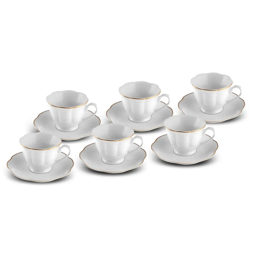 Karaca Çan 12-Piece Porcelain Espresso Turkish Coffee Cup Set for 6 People, 90ml, White Gold