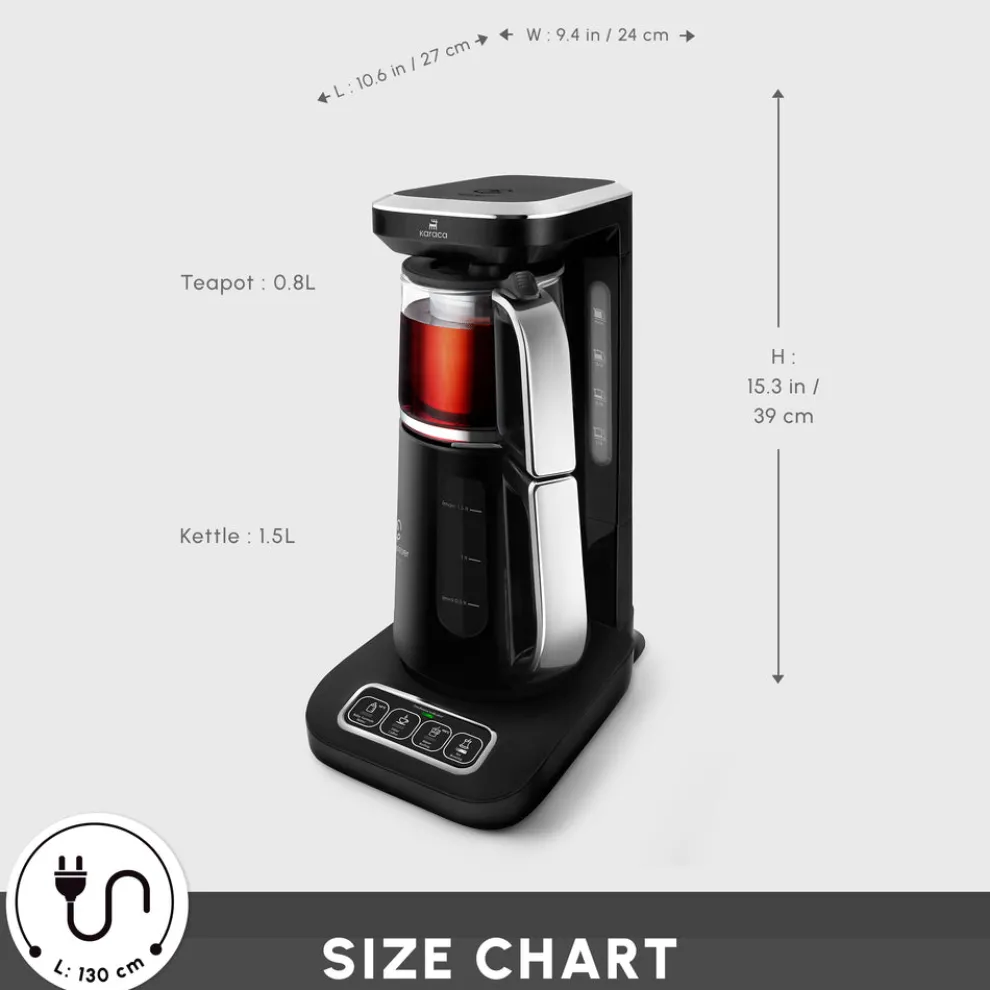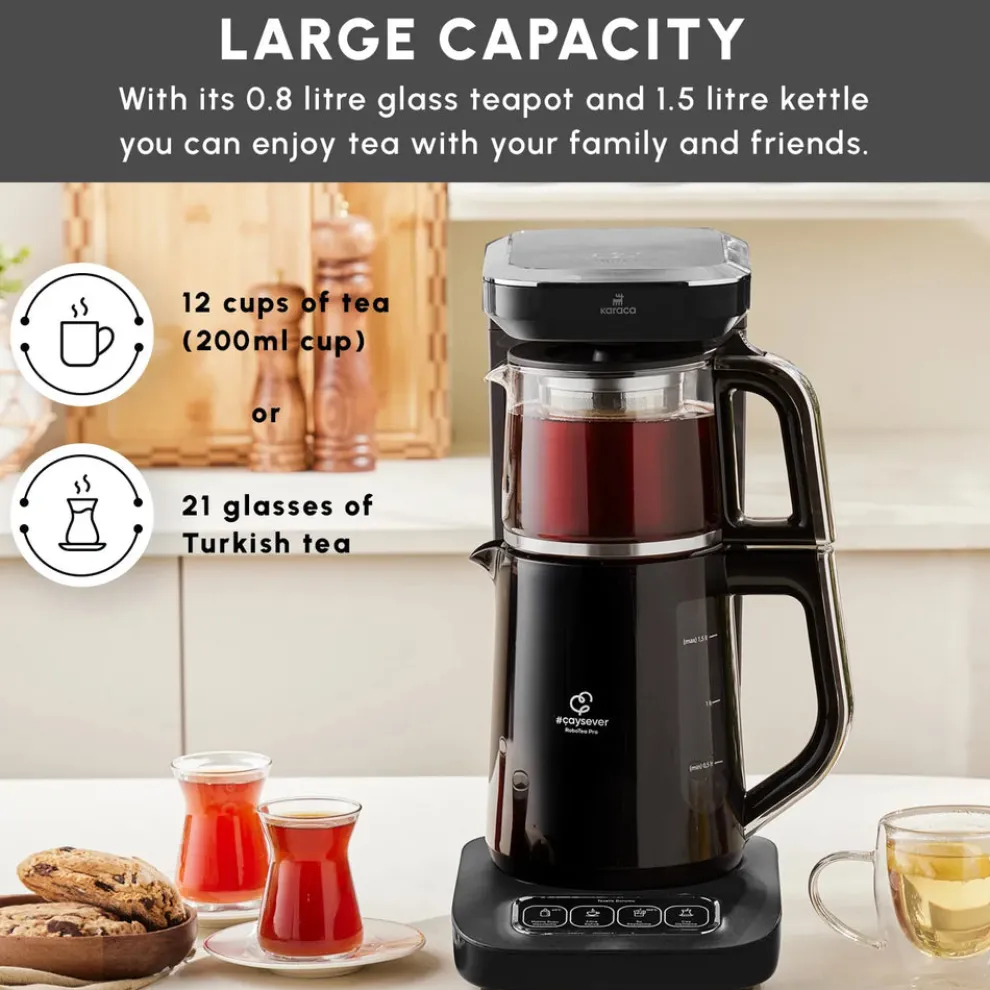 Karaca Caysever Robotea Pro 4 in 1 Talking Automatic Tea Maker Kettle and Filter Coffee Maker, 2500W, Black Chrome