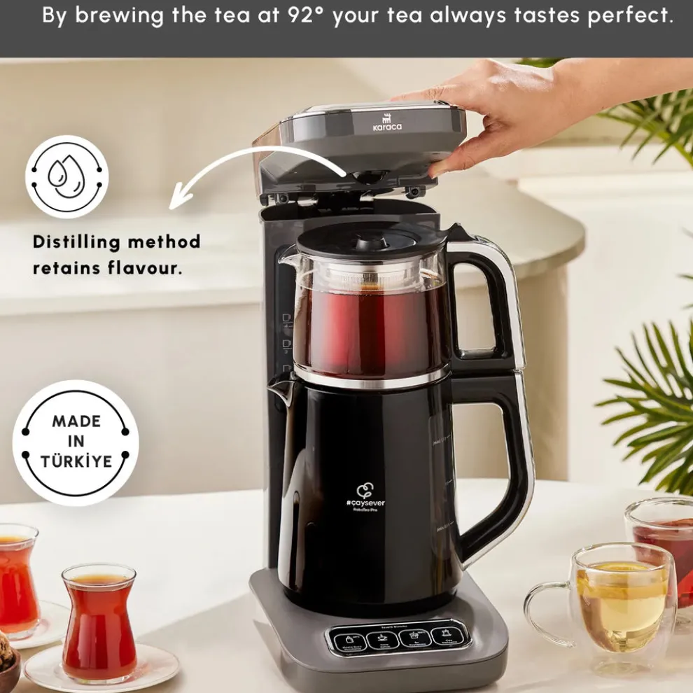The Caysever Robotea Pro brews your tea in 15 minutes with the flavour-guaranteed distillation technique and ensures that the tea develops its full aroma without burning the tea leaves. At 90 degrees, your tea stays fresh with ideal colour and flavour for 60 minutes. You can also monitor the freshness of your tea with the light indicator that shows the freshness status.