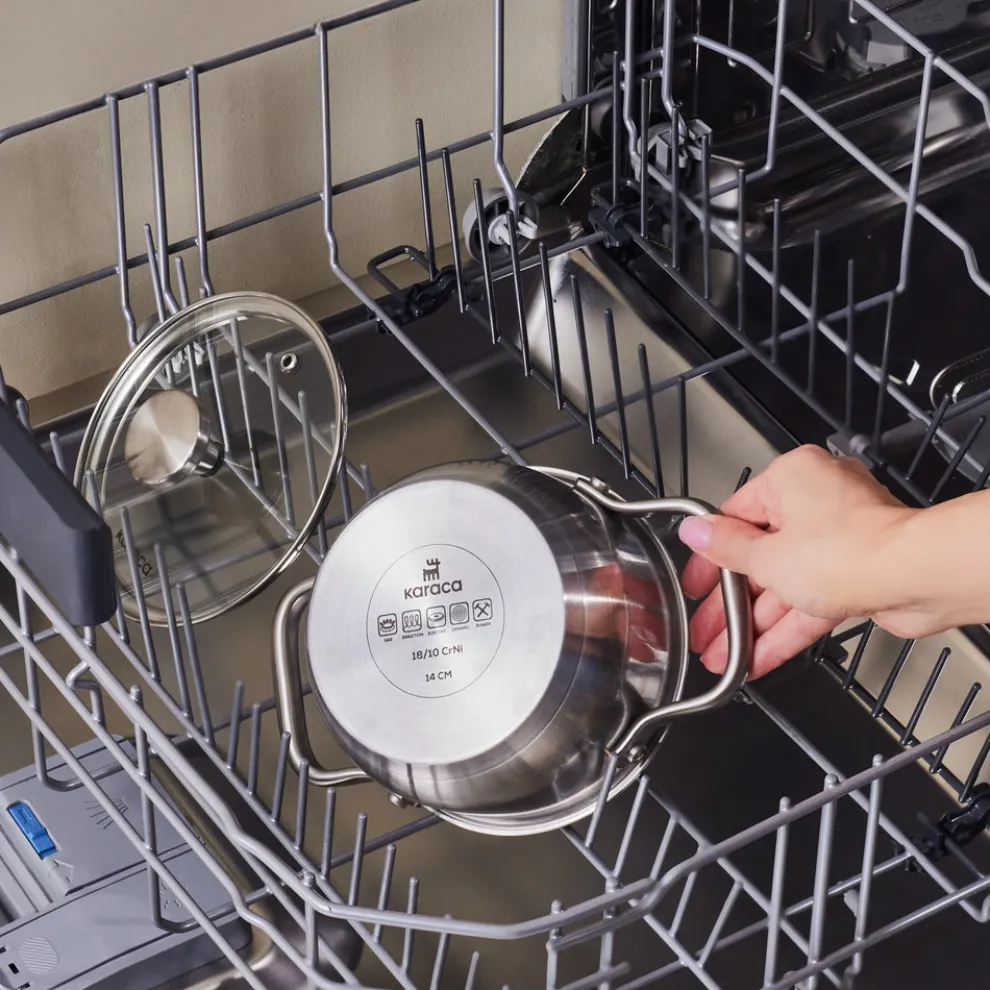 Karaca Elite Stainless Steel Induction Stock Pot & Lid, 14cm, Silver