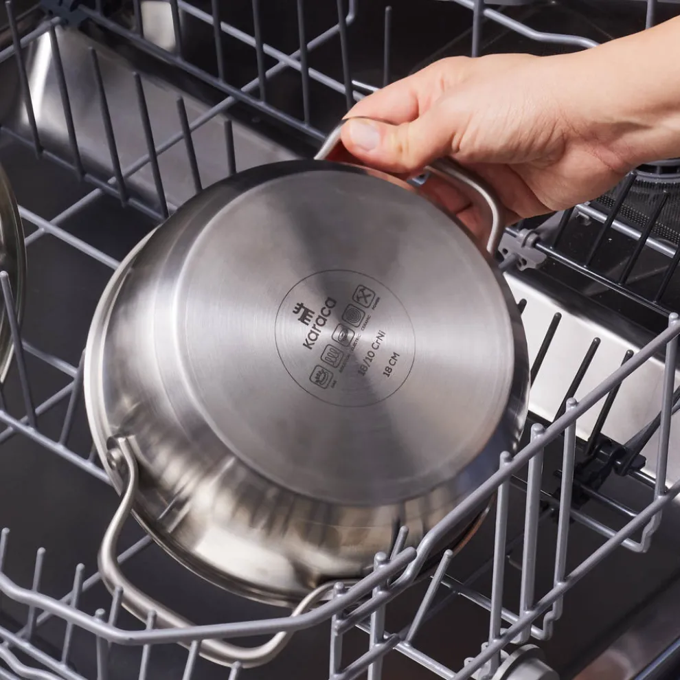 Karaca Elite Stainless Steel Induction Shallow Casserole & Lid, 16cm, Silver