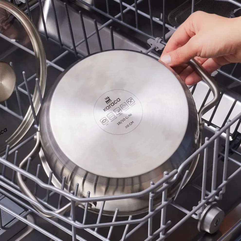 Karaca Elite Stainless Steel Induction Shallow Casserole & Lid, 20cm, Silver