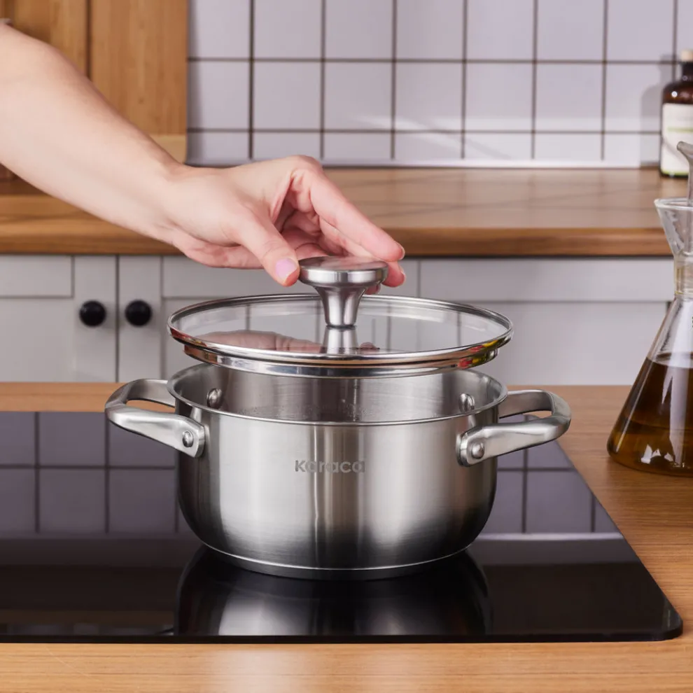 Karaca Elite Stainless Steel Induction Stock Pot & Lid, 18cm, Silver
