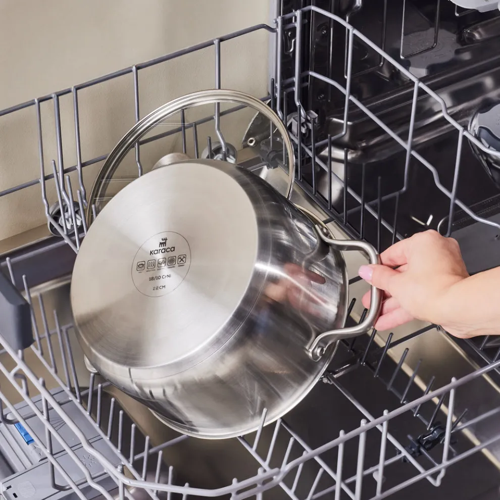 Karaca Elite Stainless Steel Induction Stock Pot & Lid, 22cm, Silver