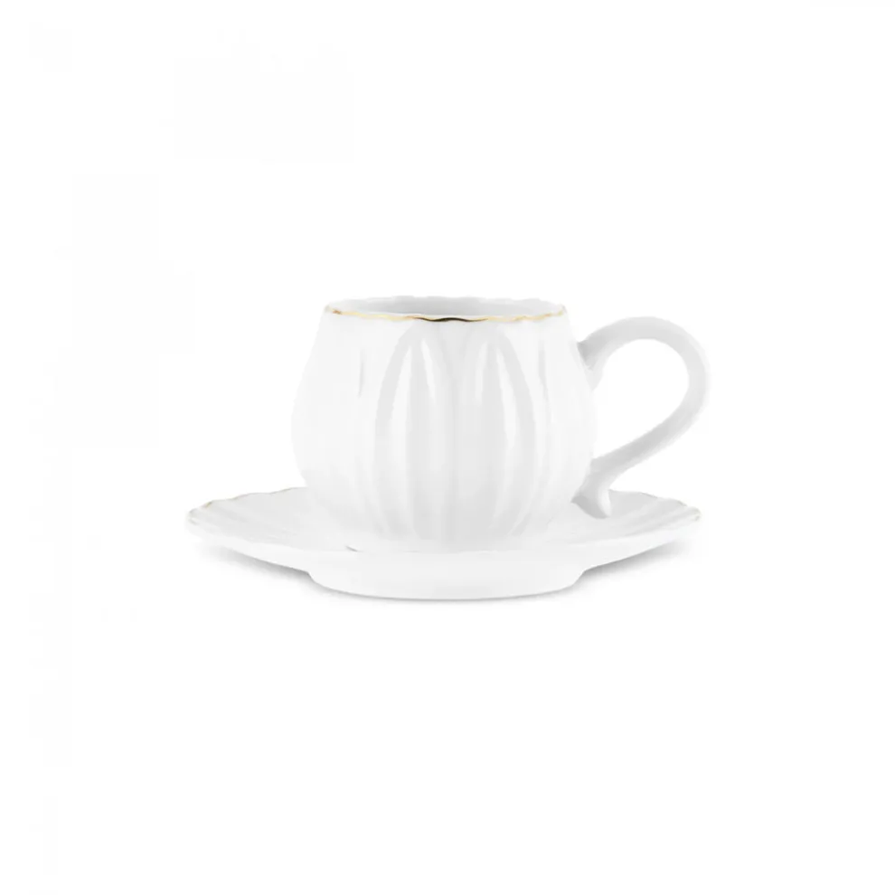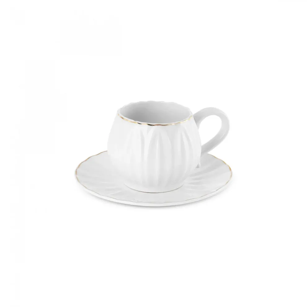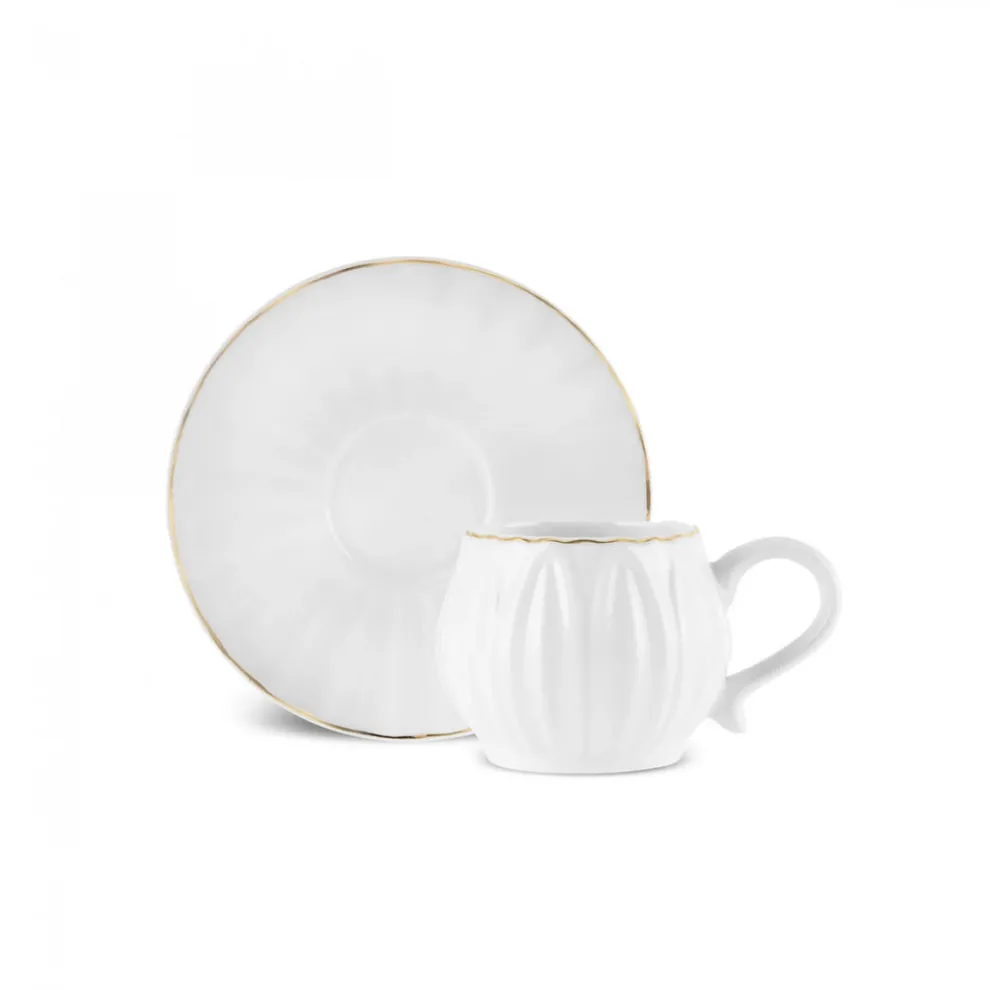 Karaca Eylul 12-Piece Bone China Espresso Turkish Coffee Cup Set for 6 People, 85ml, White