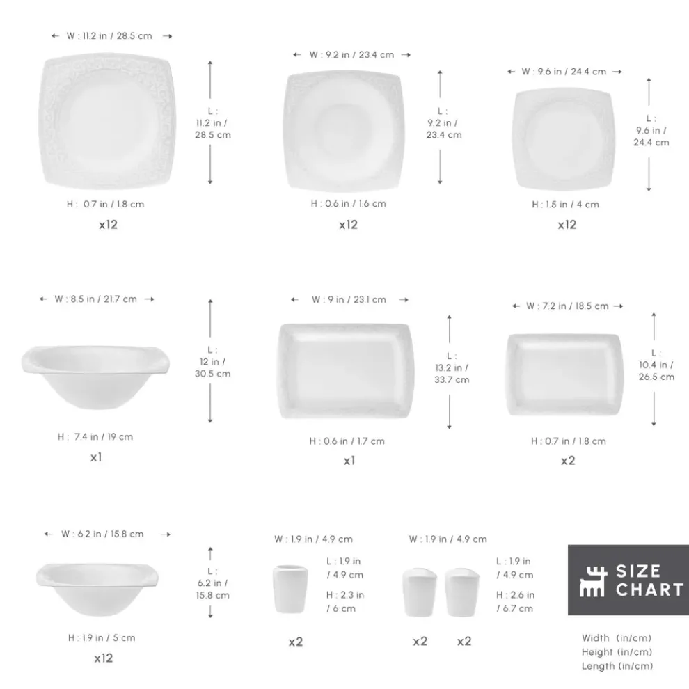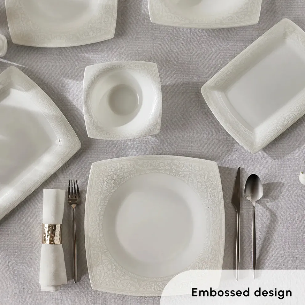 Karaca Fine Pearl Roma 58-Piece Dinner Set for 12 People, White