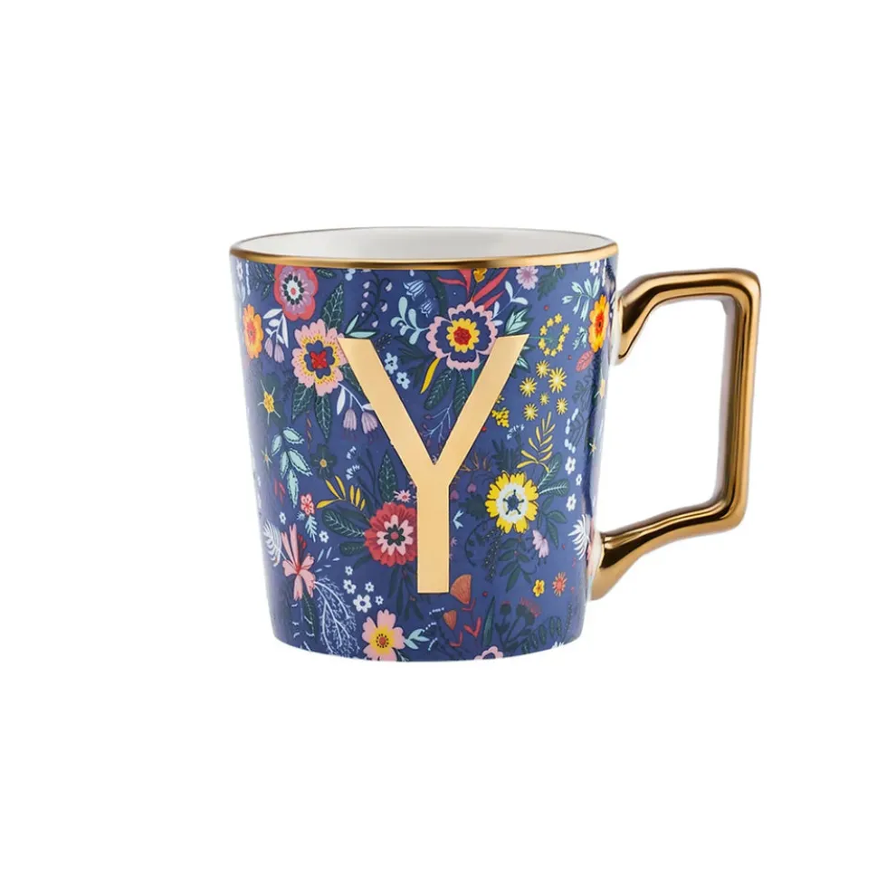 Karaca Flower Porcelain Letter Y Mug, 350ml, Multi
