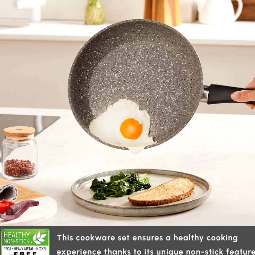 With a saucepan and a frying pan included in the set, you’ll have versatile options for preparing a wide range of delicious dishes. Whether you’re simmering sauces, sautéing vegetables, or searing meats, this cookware set is up to the task. The ergonomic design and comfortable handles make cooking a breeze, whether you’re a seasoned chef or a beginner cook.