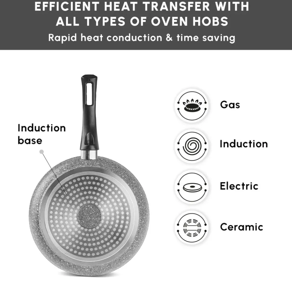 Designed for convenience, the easy-to-clean granite interior and exterior coating, along with the 4 mm thick body, provide durability and a sleek appearance. Say goodbye to stubborn stains and enjoy a cookware set that saves you time and effort in the kitchen.