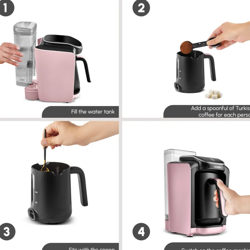 Important: This machine is designed exclusively for Turkish coffee and is not suitable for milk, instant coffee, or similar ingredients.