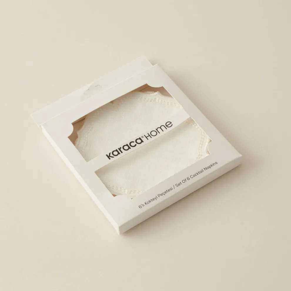 Karaca Home 6-Piece Cocktail Napkin, 14x14cm, White