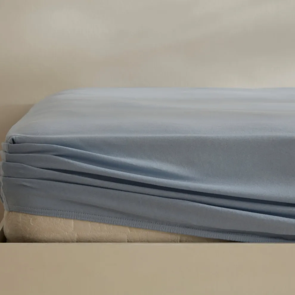 Karaca Home Jersey 100% Turkish Cotton Fitted Sheet, 180×200+30cm, Blue