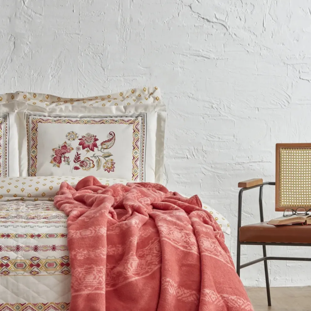 Karaca Home Carme Winter Duvet Cover Set with Bed Sheet, Double, Pomegranate Flower