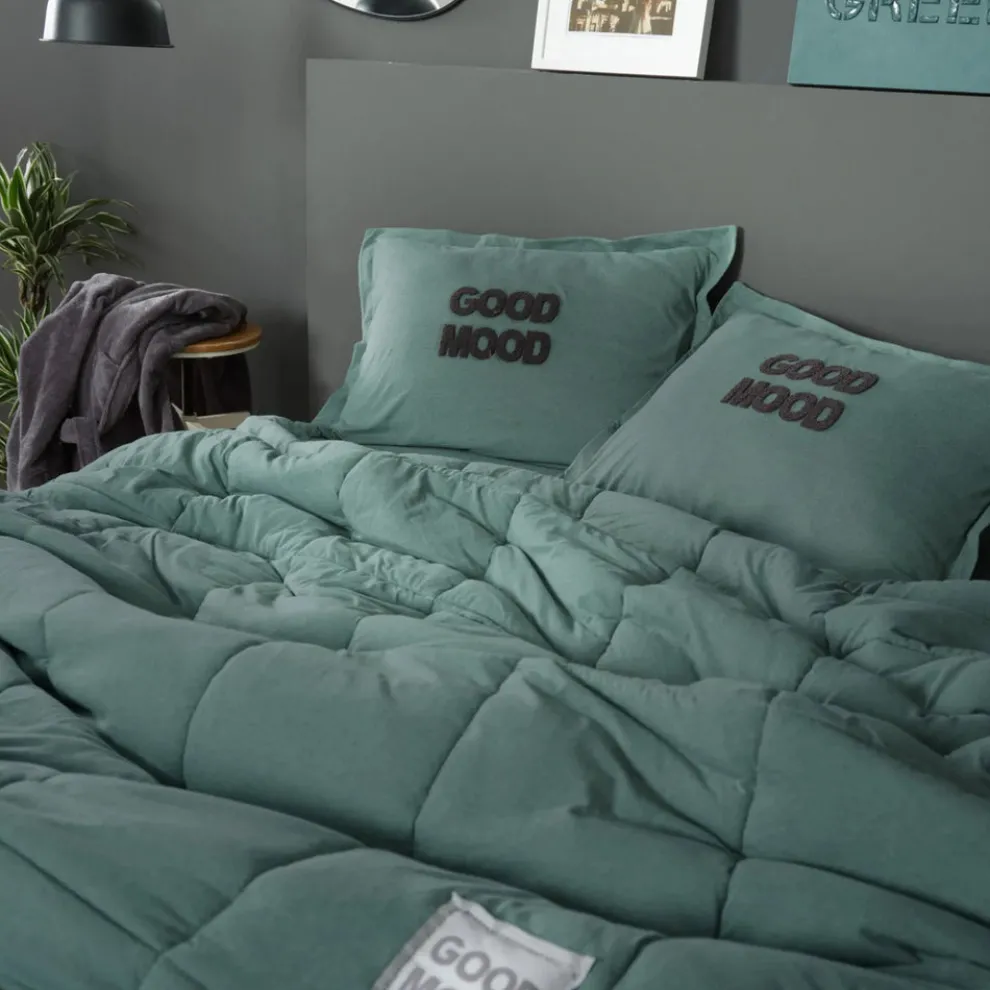 Karaca Home Motto Cotton Comfort Duvet Set with Bed Sheet, Double, Petrol