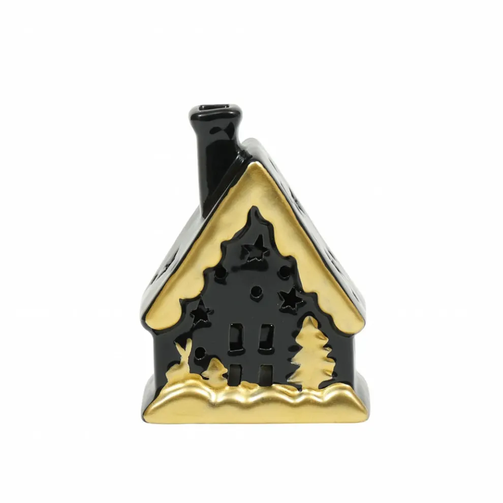 Karaca Home New Year Christmas Ceramic Lighting House Trinket, 12cm, Black Gold