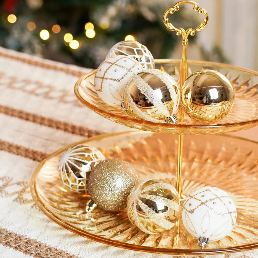 Karaca Home New Year Christmas Tree Bauble Set and Star Tree Topper, 21 Piece, Gold