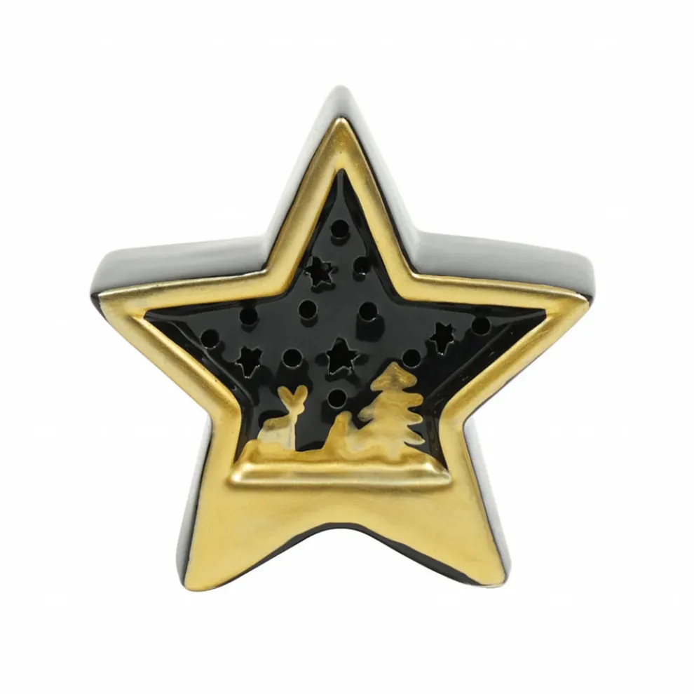 Karaca Home New Year Christmas Star Ceramic Lighting Trinket, 11cm, Black Gold