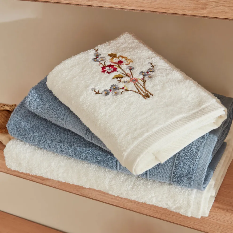 Karaca Home Nita 5-Piece 100% Cotton Family Bathroom Set, Blue – Offwhite