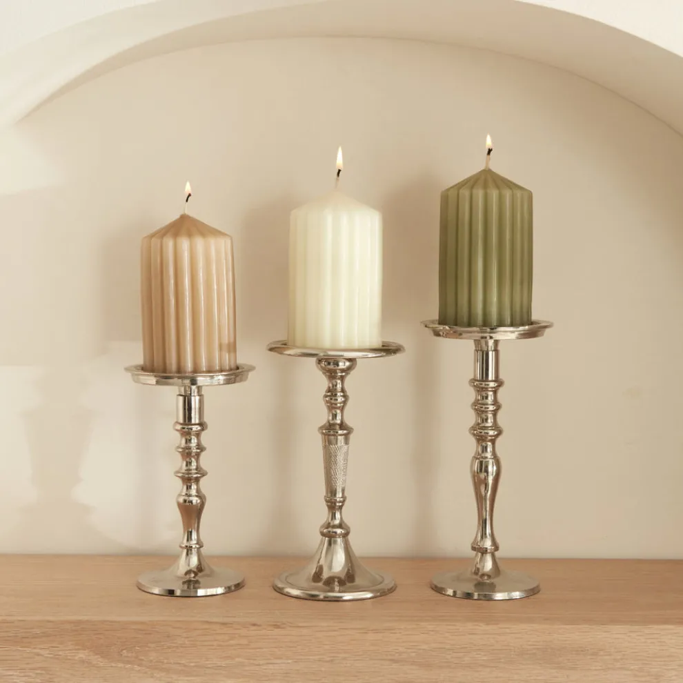 - Karaca Home Stripped Pillar Candle, 7x12cm, Light Brown