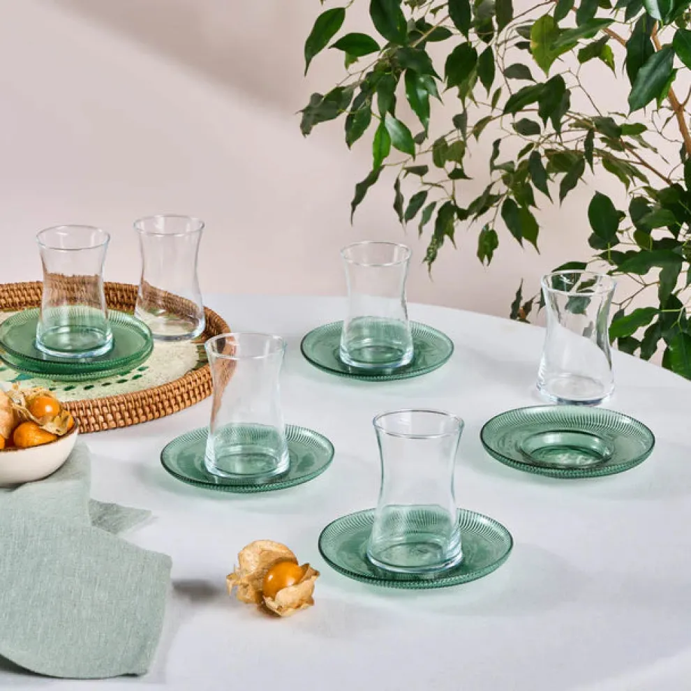 Karaca Juliet 12-Piece Turkish Tea Set for 6 People, Green