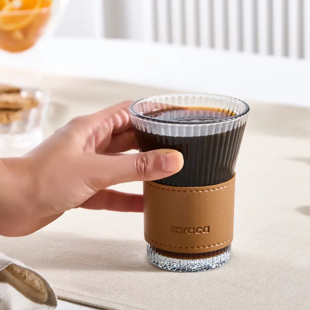 Karaca Leather Cool Touch Latte Coffee Glass, 210 Ml, Brown
