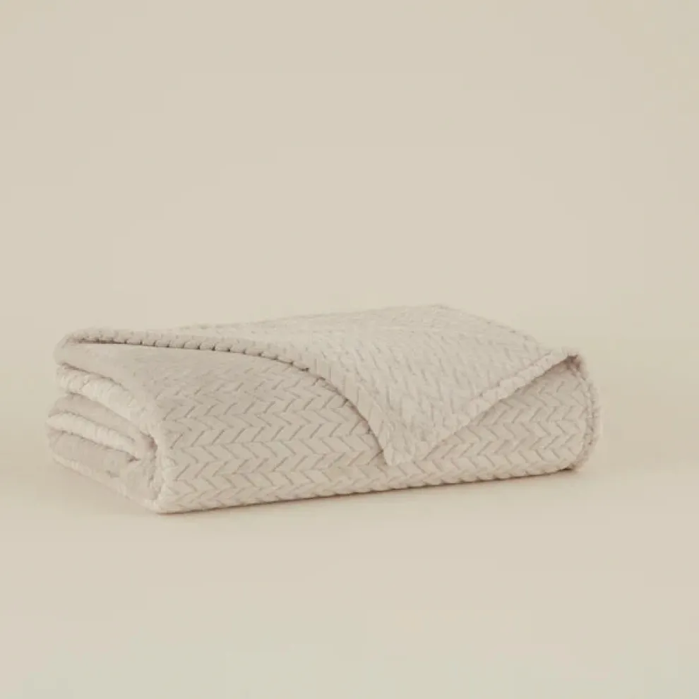 Karaca Leaves Wellsoft Blanket, 130x150cm, Light Grey