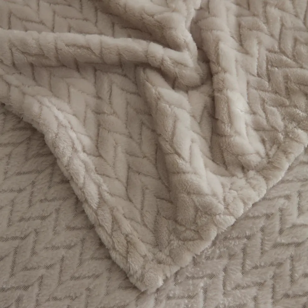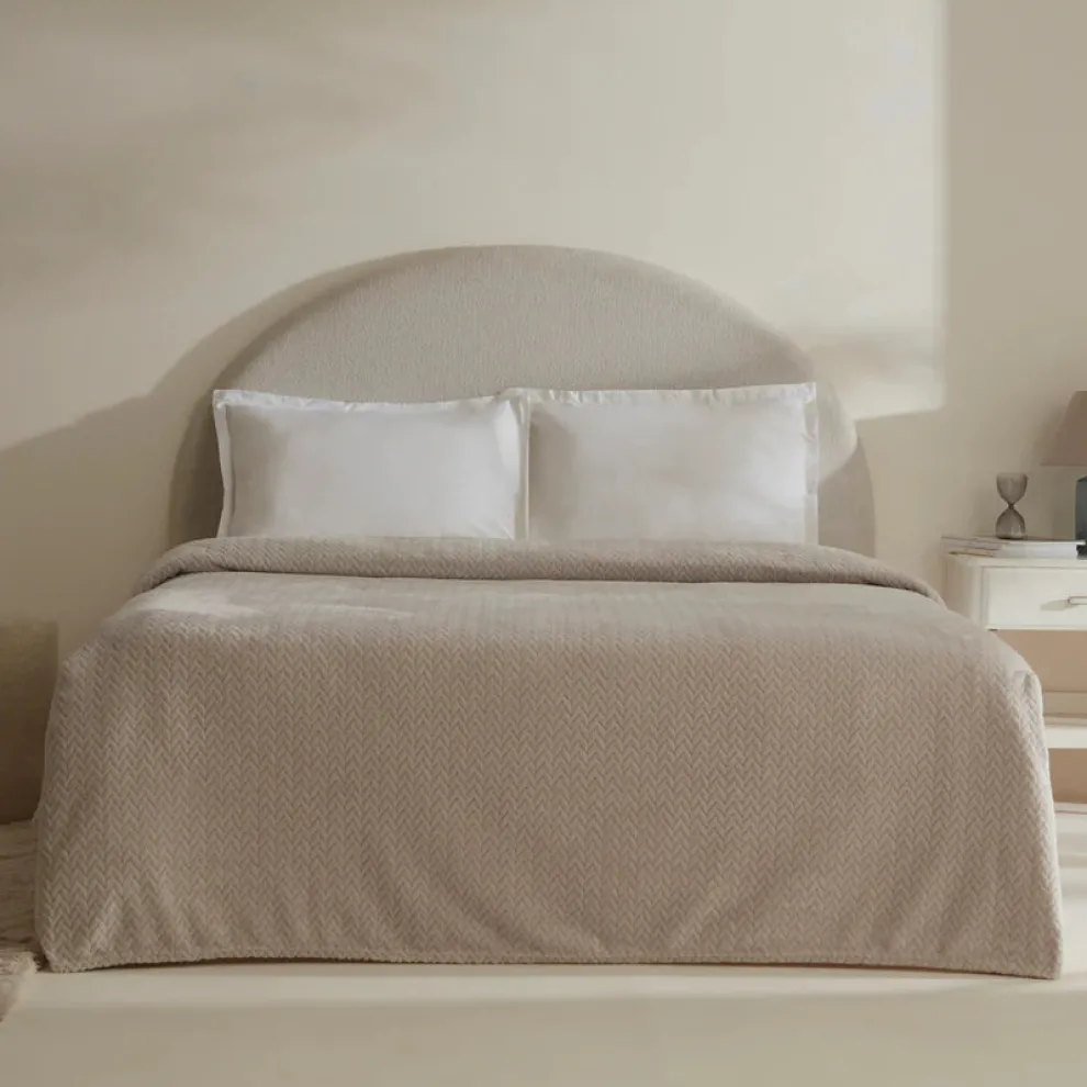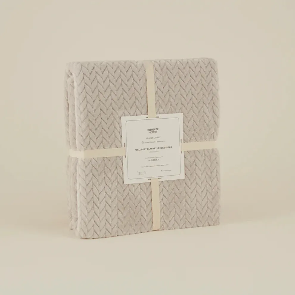 Karaca Leaves Wellsoft Blanket, Double, 200×220cm, Light Grey