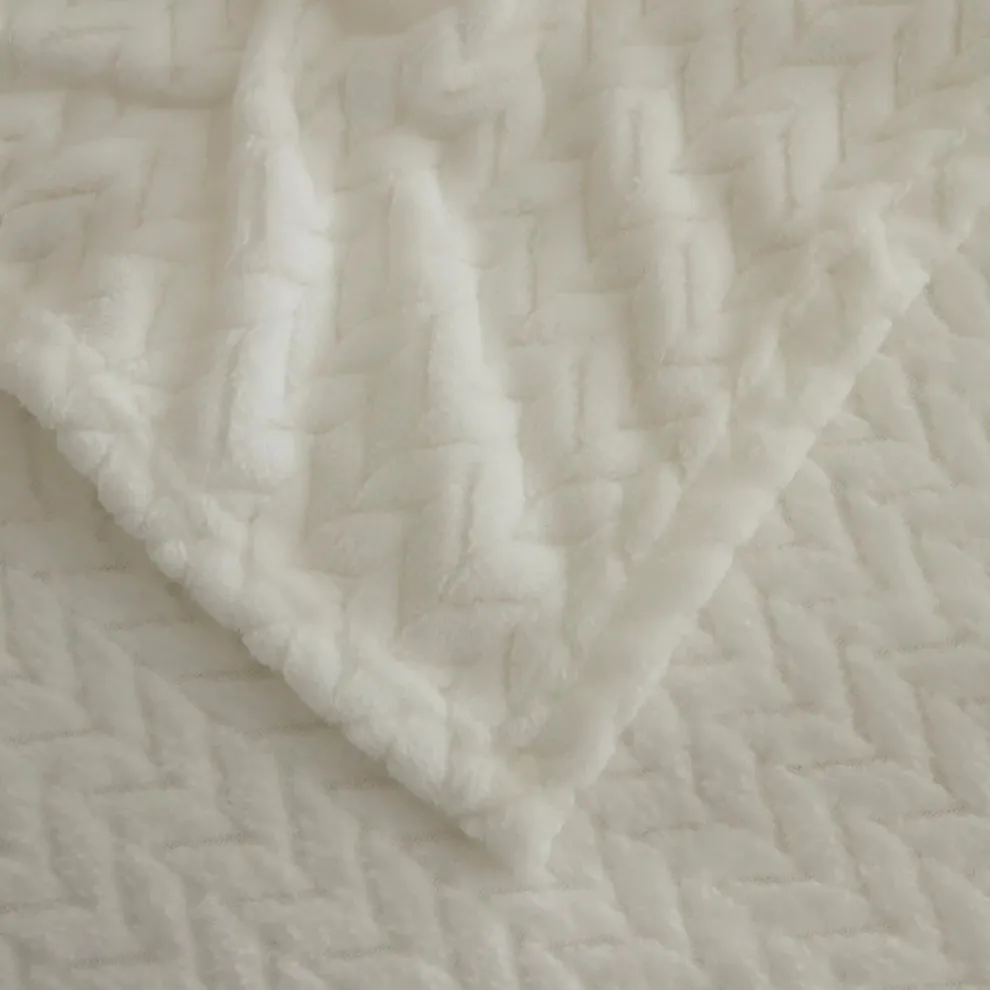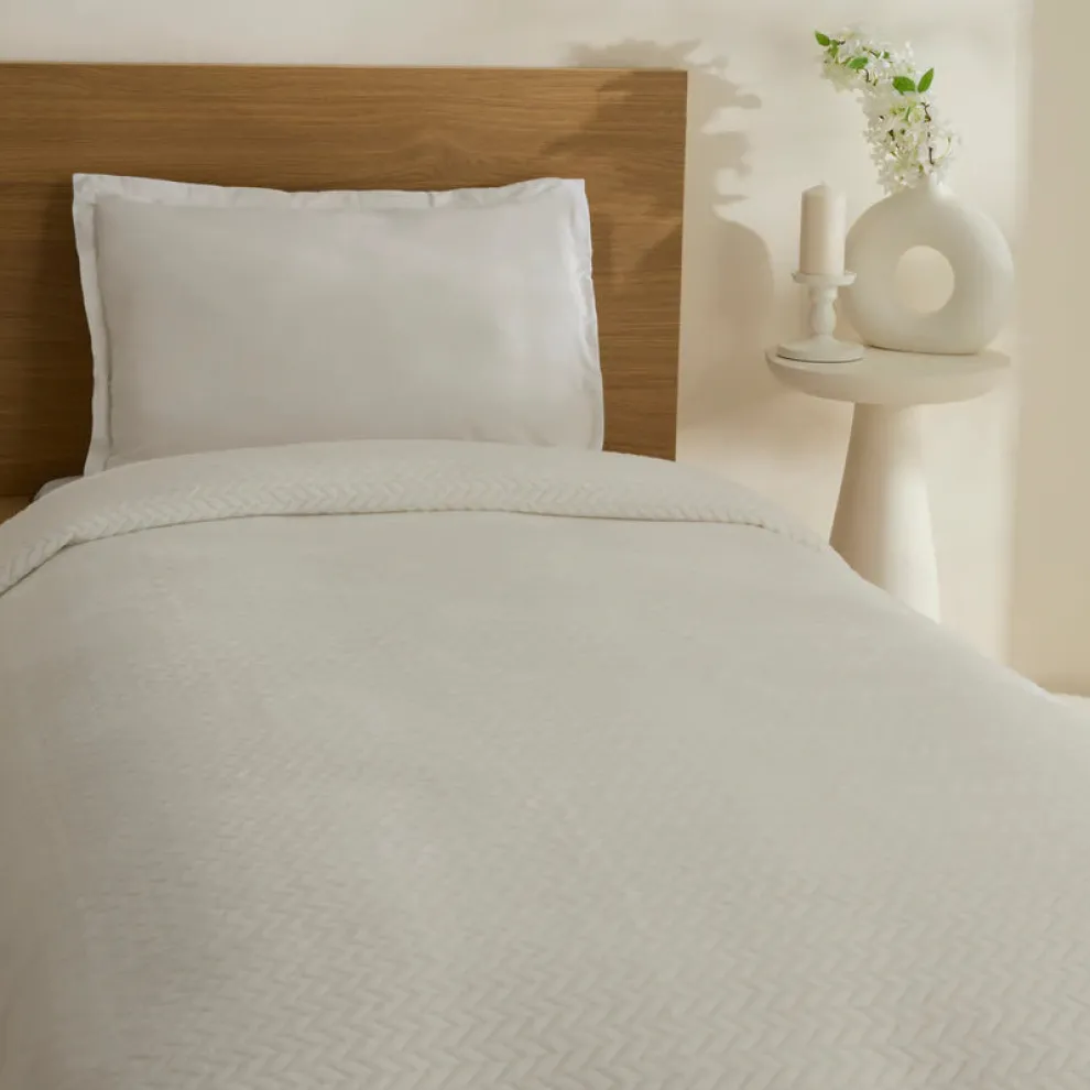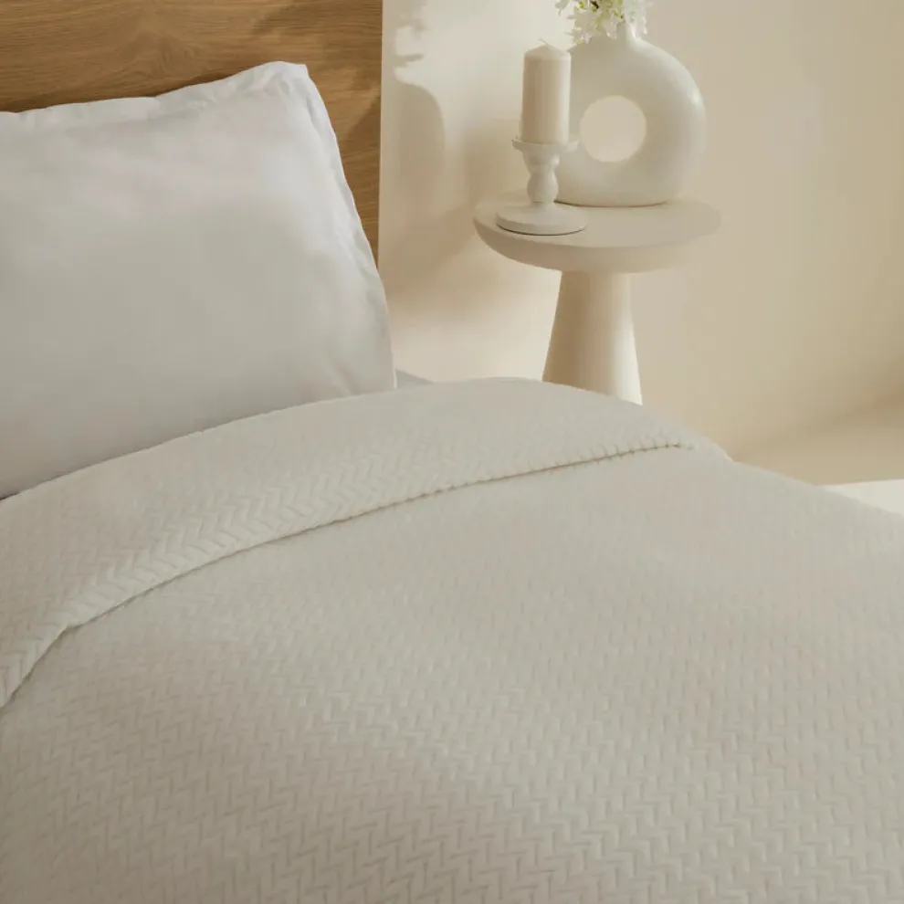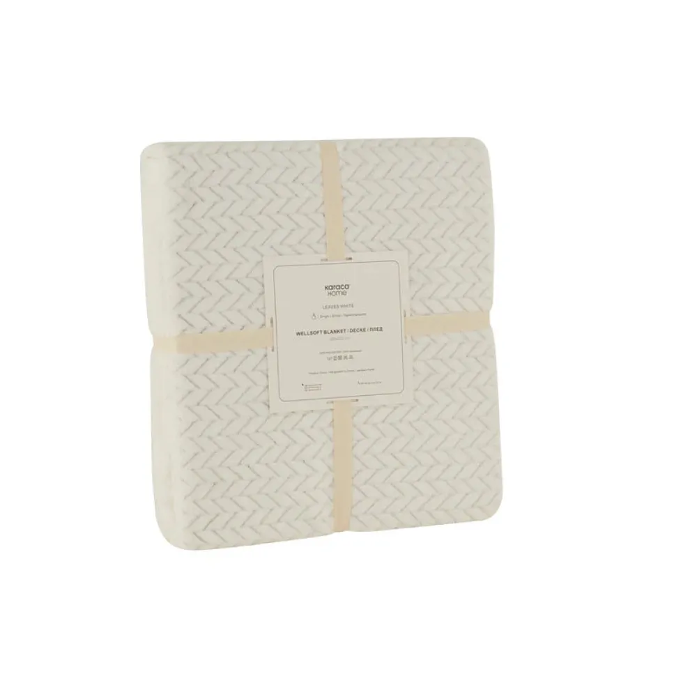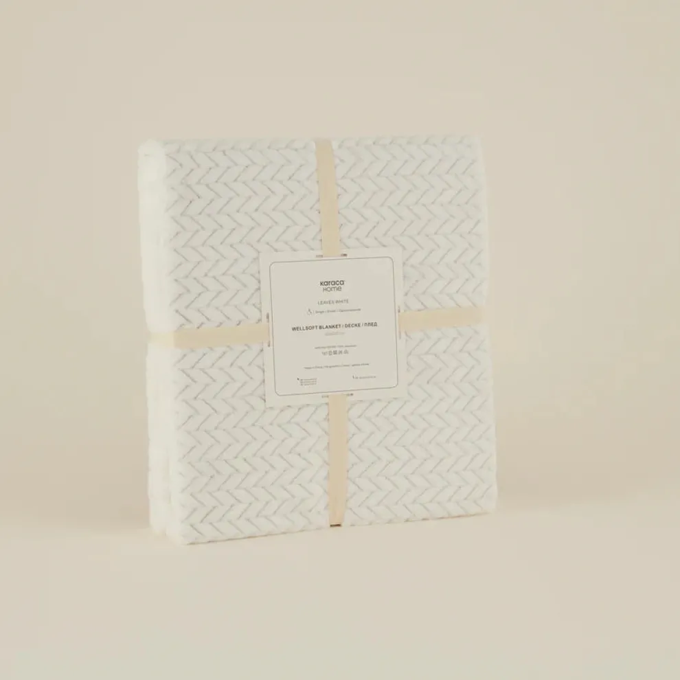 Karaca Leaves Wellsoft Blanket, Single, 150x200cm, White
