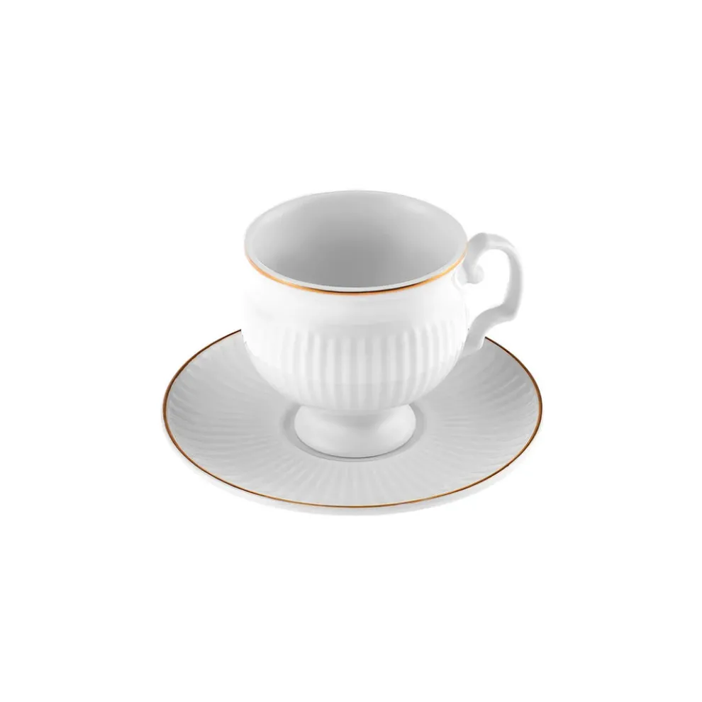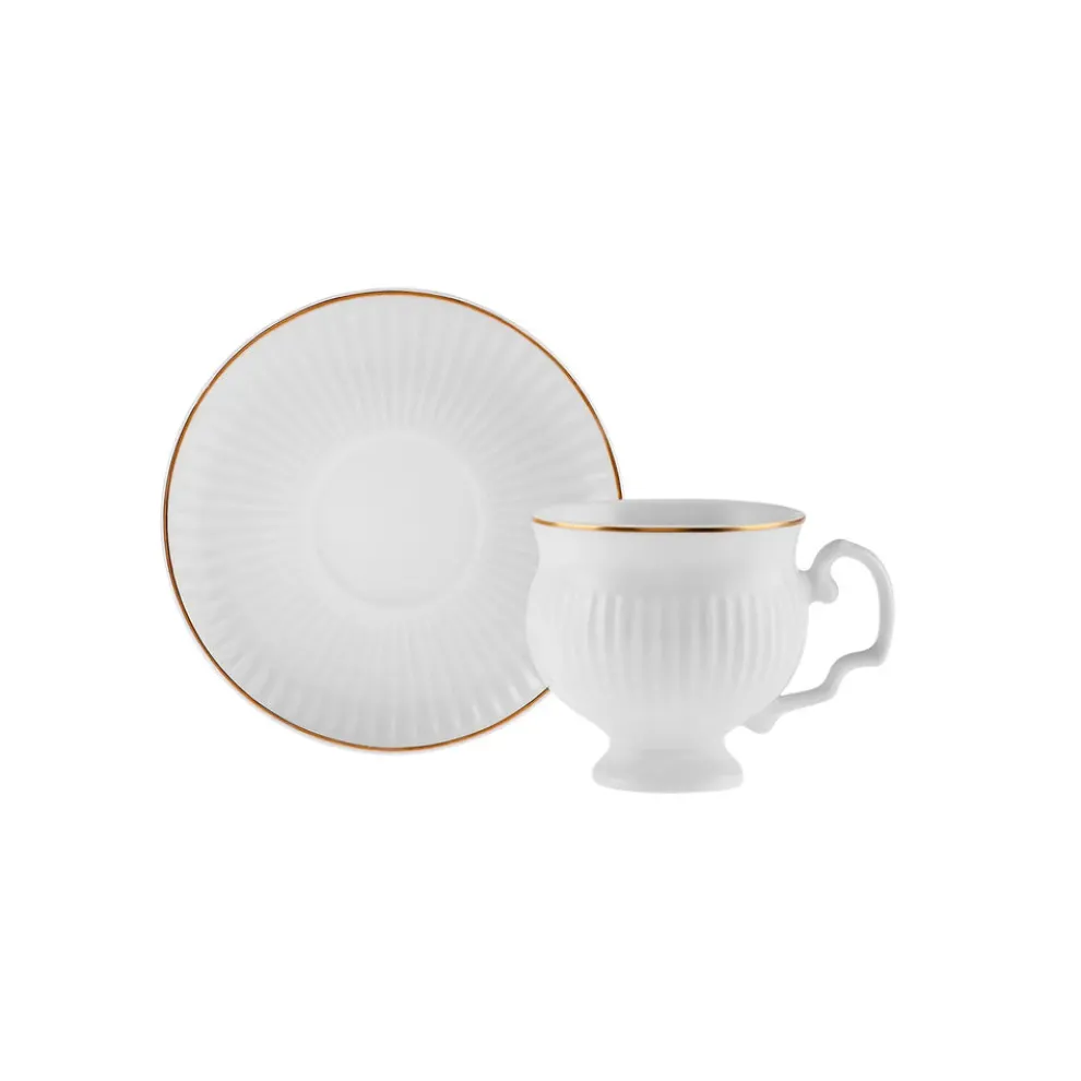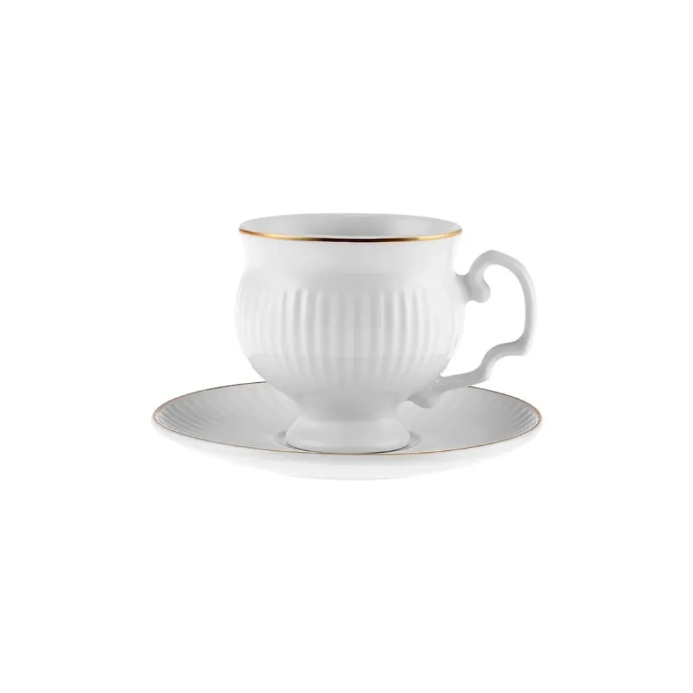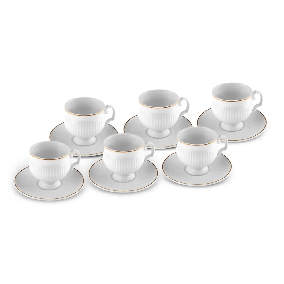 Karaca Malta 12-Piece Porcelain Espresso Turkish Coffee Cup Set for 6 People, 100ml, White Gold