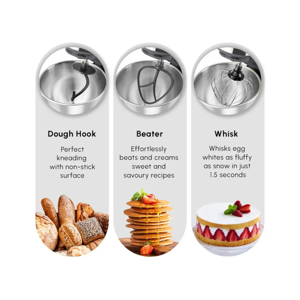 With the renewed Karaca Mastermaid Chef Pro Stand Mixer’s 1500W high motor power and improved ergonomic handle that provides easy grip, it is now very easy to catch flavour and creativity in the kitchen.
